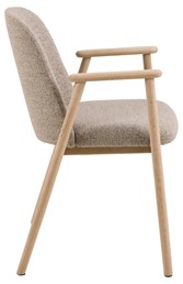 Krzesło Leo to połączenie skandynawskiej prostoty i elegancji, idealne do nowoczesnej jadalni. Siedzisko tapicerowane jest beżową tkaniną bouclé, która dodaje mu luksusowego charakteru dzięki swojej kręconej strukturze. Smukłe nogi wykonane z dębu olejowanego i bielonego podkreślają minimalistyczny design, sprawiając, że krzesło wpasuje się w różnorodne wnętrza, nadając im subtelnej elegancji.