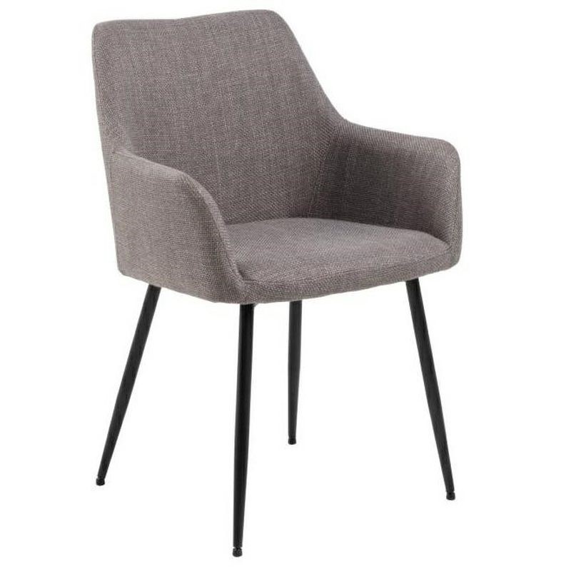 Krzesło Lizzy z podłokietnikami w jasnoszarym kolorze to elegancki i funkcjonalny mebel, idealny do jadalni lub salonu. Tapicerowane jest strukturalną tkaniną w odcieniu szaro-brązowym, co nadaje mu nowoczesny wygląd. Podstawa krzesła wykonana jest z czarnego, matowego metalu malowanego proszkowo, co zapewnia stabilność i trwałość. Krzesło Lizzy charakteryzuje się wygodnym siedziskiem i oparciem, a także podłokietnikami, które zwiększają komfort użytkowania. Maksymalne obciążenie wynosi 110 kg, a waga krzesła to 5,3 kg. To doskonały wybór dla osób ceniących styl i wygodę.