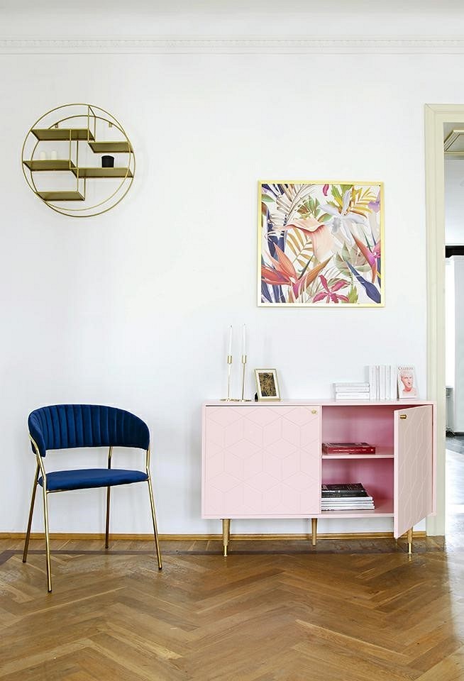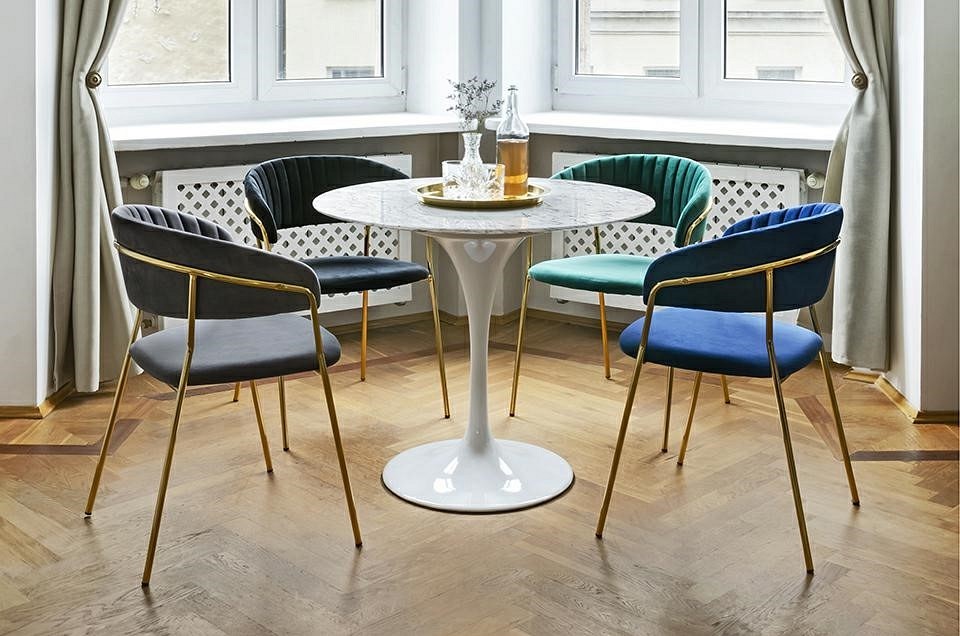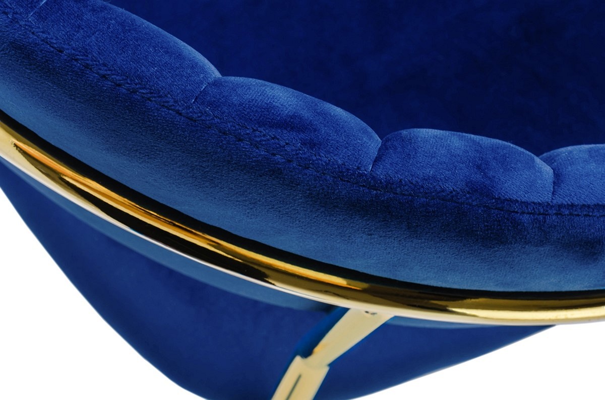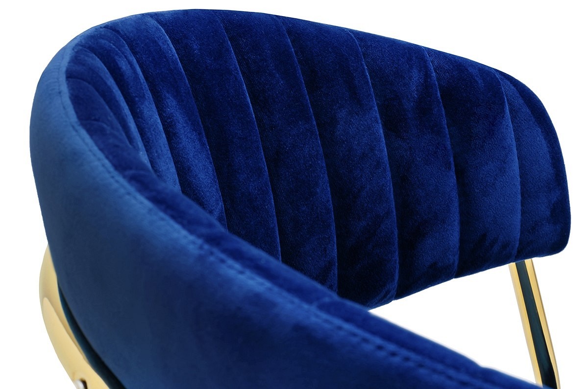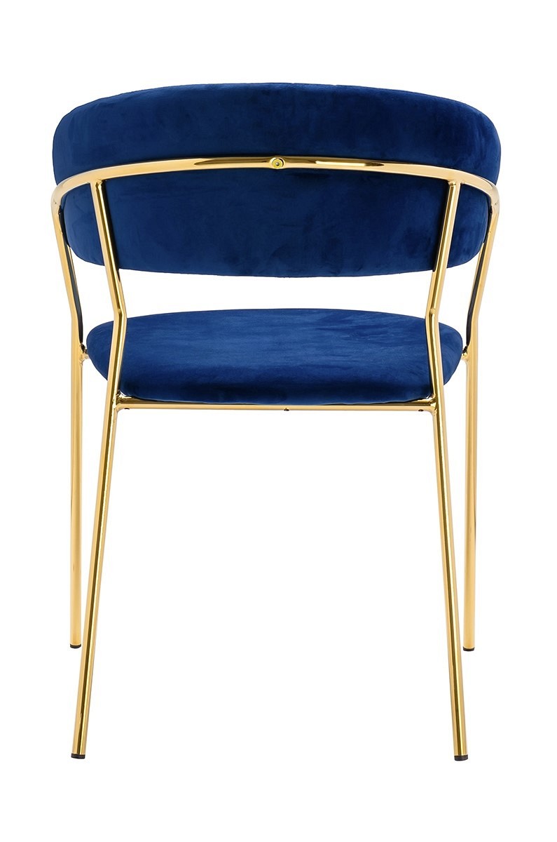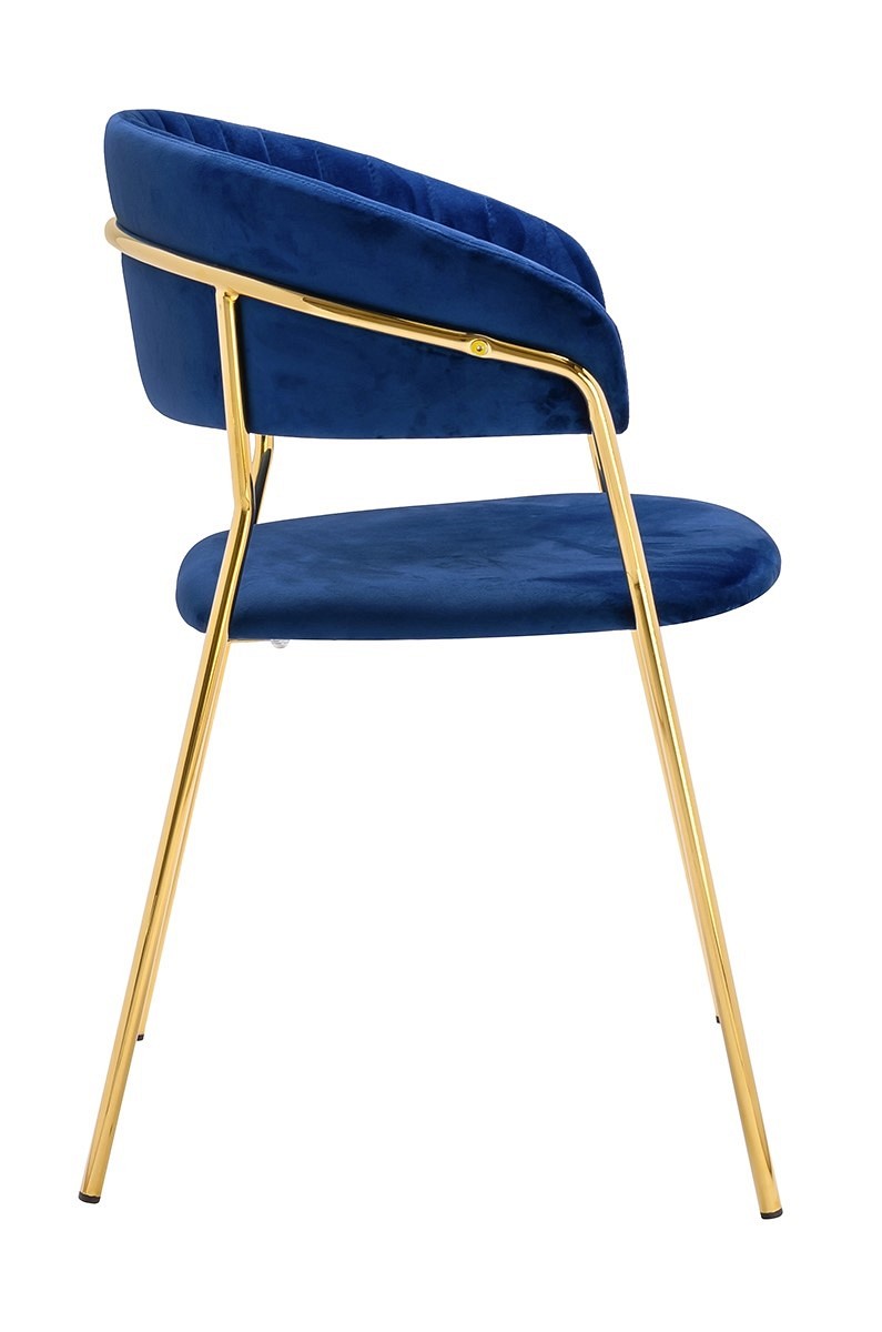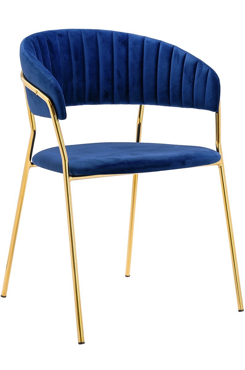 Krzesło Margo w kolorze ciemny niebieski. Siedzisko i oparcie tapicerowane miękkim i przyjemnym w dotyku welurem. Konstrukcja z metalu w kolorze złotym, błyszczącym. Margo to doskonałe połączenie modnej tkaniny ze złotem. Pionowe przeszycia na oparciu dodają elegancji. Krzesło idealnie pasujące do wnętrz nowoczesnych i klasycznych. Waga netto 1 szt.: 5,5 kg. Waga opakowania: 7 kg. Wymiary opakowania: 78,5 cm x 58,5 cm x 63 cm. Maksymalna ilość szt. w opakowaniu: 2 Sposób wysyłki: Paczka Produkt złożony: Tak