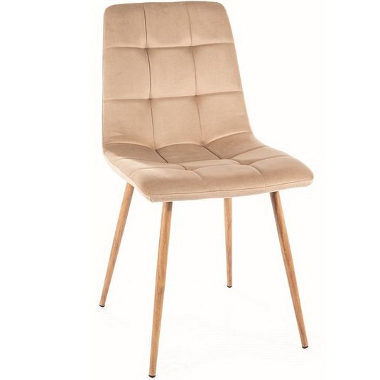 Krzesło MILA to stylowe i nowoczesne krzesło, które stanowi idealne uzupełnienie każdego wnętrza. Wykonane z wysokiej jakości materiałów, krzesło jest wyjątkowo trwałe i odporne na zużycie. Wygodne, miękkie siedzisko i oparcie wykonane z aksamitu zapewniają wygodne siedzenie. Solidny stelaż z metalu w kolorze dębowym zapewnia trwałość i stabilność. Krzesło ma również estetyczny wygląd i może być łatwo dopasowane do każdego wnętrza.