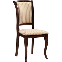 Krzesła oferujemy w pięciu wariantach: białym z szarą tapicerką, ciemny orzech z jasno beżową tapicerką, czereśnia antyczna z jasnobeżową tapicerką, ciemny orzech z jasnobeżową tapicerką z ciemniejszymi prążkami oraz ciemny orzech z ciemnobeżową tapicerką w ciemniejsze prążki.