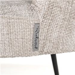 - Miękkie, wygodne siedzisko w jasnym beżowym odcieniu z czarnymi metalowymi nogami