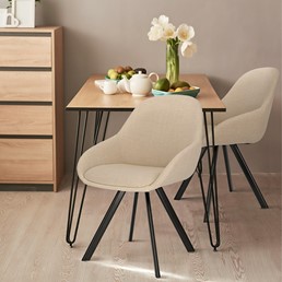 Krzesło Nels to wygodne i stylowe krzesło o klasycznym designie. Wykonane jest z beżowej tkaniny, która pięknie komponuje się z czarnymi nogami. To eleganckie połączenie kolorów sprawia, że krzesło będzie doskonałym uzupełnieniem zarówno nowoczesnego, jak i tradycyjnego wnętrza.Dzięki solidnej konstrukcji i wygodnemu siedzisku, krzesło Nels zapewnia komfort użytkowania przez długi czas. Idealnie sprawdzi się zarówno w jadalni, salonie, biurze czy gabinecie.