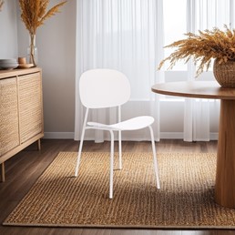 Krzesło Nube w białym kolorze to doskonałe rozwiązanie do kuchni, jadalni lub przestrzeni biurowej. Jego prosty design i praktyczność sprawiają, że pasuje do wielu aranżacji.