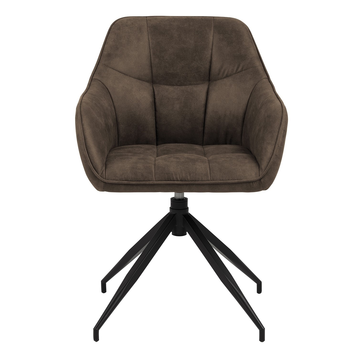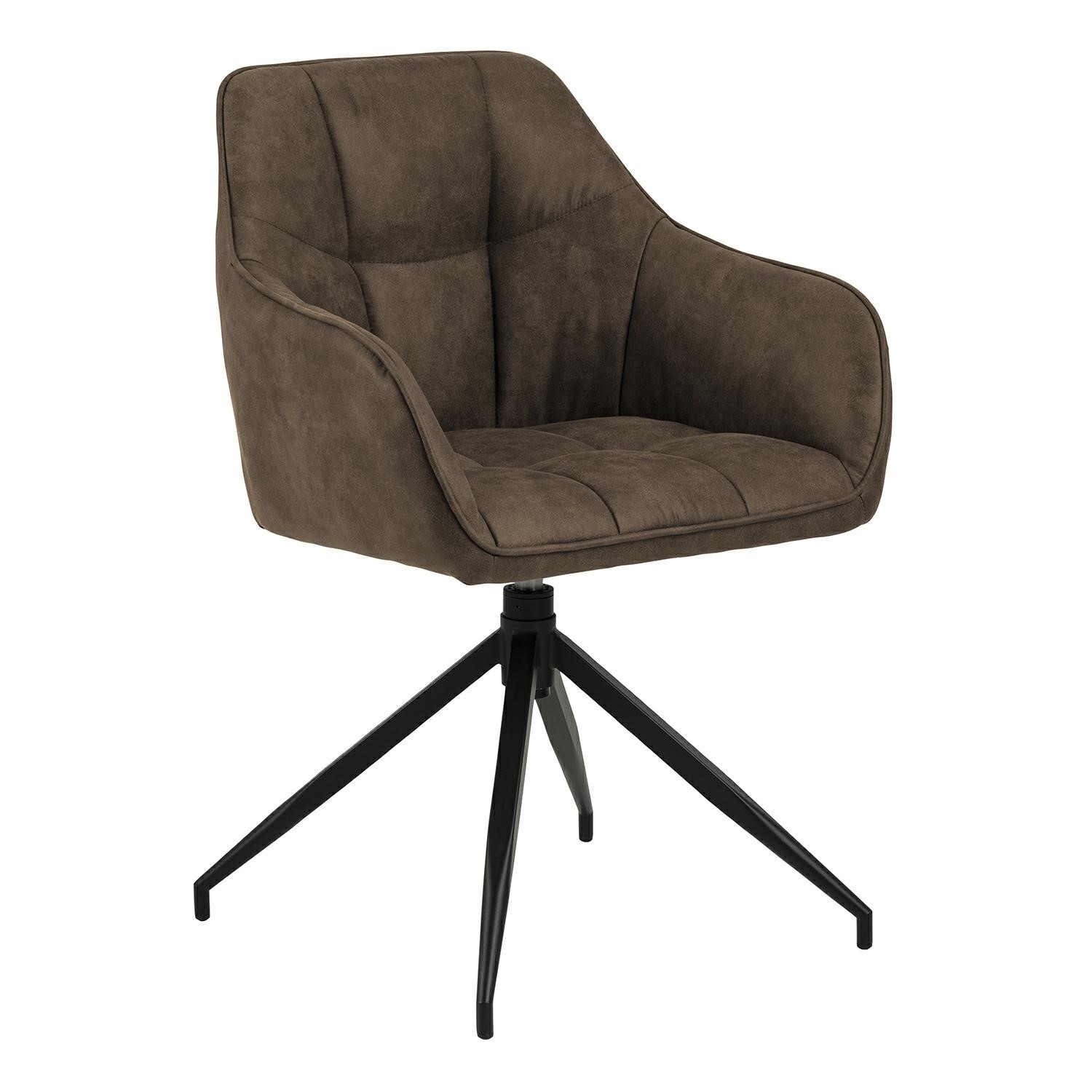 Krzesło Brenda to elegancka propozycja dla nowoczesnych wnętrz. Siedzisko tapicerowane tkaniną i wypełnione pianką poliuretanową zapewnia komfort codziennego użytkowania. Metalowa podstawa malowana proszkowo, z unikalnymi przeszyciami na oparciu, dodaje meblowi charakteru. Dzięki czterem nogom rozchodzącym się na boki, krzesło zyskuje funkcję obrotu, co podkreśla jego nowoczesny charakter i funkcjonalność.