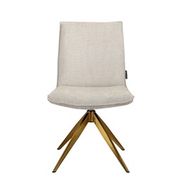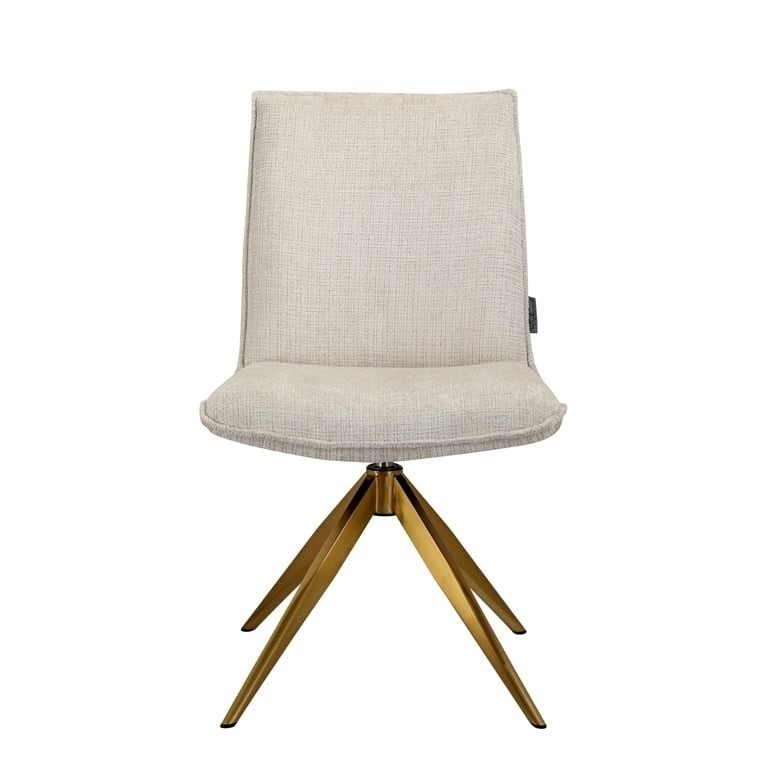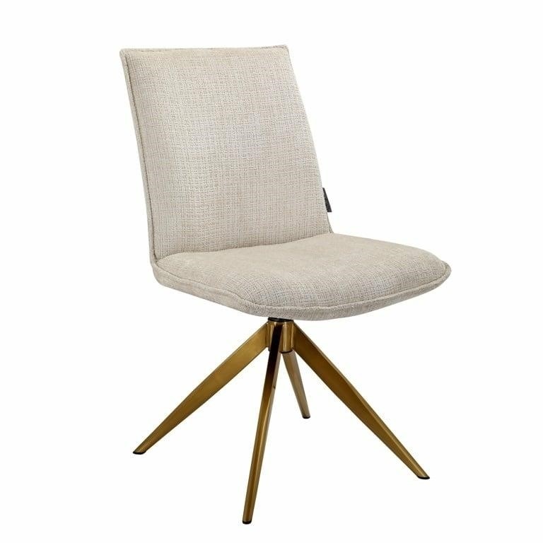 Krzesło obrotowe Dakota to elegancki wybór do każdego wnętrza. Jego minimalistyczny, nowoczesny design sprawia, że idealnie wpasuje się w biura, gabinety, jadalnie i inne przestrzenie. Siedzisko wykonane z jasnobeżowej tkaniny szenilowej gwarantuje wygodę, a obrotowa podstawa z wysokiej jakości stali nierdzewnej w złotej kolorystyce nadaje meblowi wyjątkowego charakteru. Krzesło dostępne jest również w wersji z podłokietnikami, zapewniając jeszcze większy komfort.