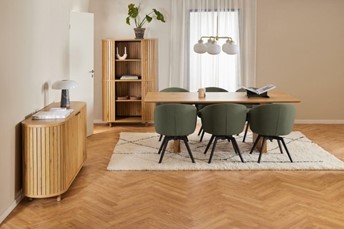 Krzesło Darlene z podłokietnikami uosabia nowoczesną elegancję i funkcjonalność. Zaokrąglone siedzisko tapicerowane tkaniną o bogatej fakturze zostało zaprojektowane z myślą o komforcie, dzięki zastosowaniu sprężyn kieszeniowych. Funkcje obrotu i automatycznego powrotu umożliwiają swobodne poruszanie się, a solidna, stalowa podstawa gwarantuje stabilność. Idealne rozwiązanie do jadalni, które łączy estetykę z praktycznością.