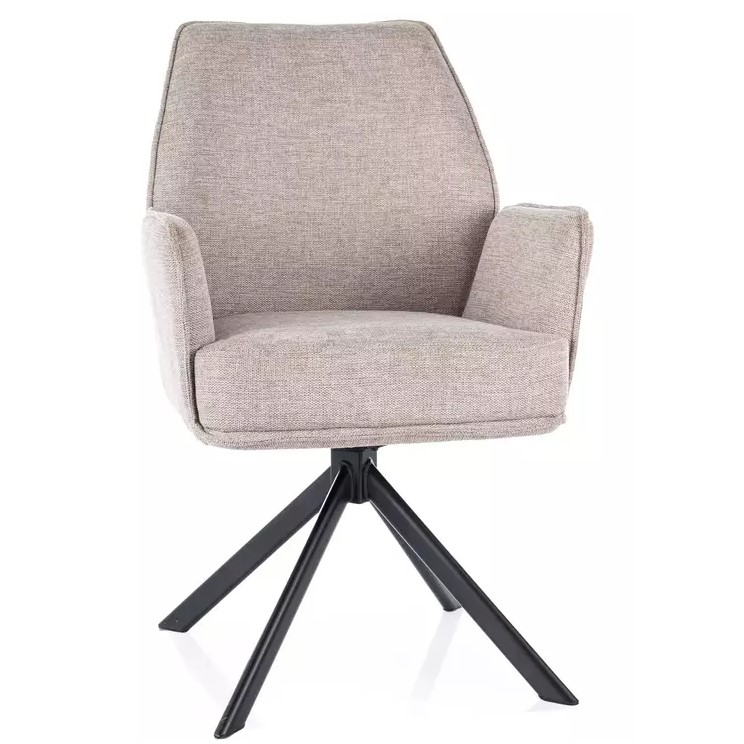Krzesło Hugo Brego łączy nowoczesny design z wyjątkową funkcjonalnością. Dzięki obrotowemu siedzisku z funkcją powrotu, idealnie sprawdzi się w dynamicznych wnętrzach. Metalowy stelaż w czarnym kolorze oraz tapicerka w beżowym odcieniu dodają elegancji i klasy, czyniąc to krzesło idealnym wyborem do biura czy nowoczesnego salonu.