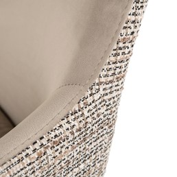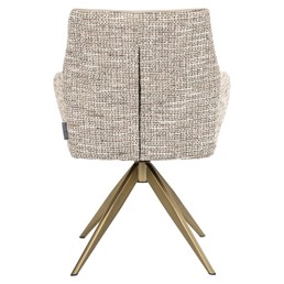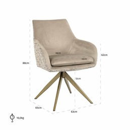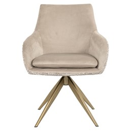 Krzesło obrotowe Lisonne łączy ponadczasowy design z najwyższą wygodą, idealnie sprawdzając się w stylowych biurach, gabinetach czy jadalniach. Welurowa tkanina w beżowym odcieniu tworzy przytulne i luksusowe wrażenie, a zdobiona tylna część dodaje subtelnej elegancji. Funkcjonalność zapewnia solidna, czarna podstawa z możliwością obrotu, co czyni Lisonne praktycznym i estetycznym wyborem do każdego wnętrza.