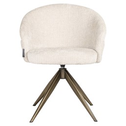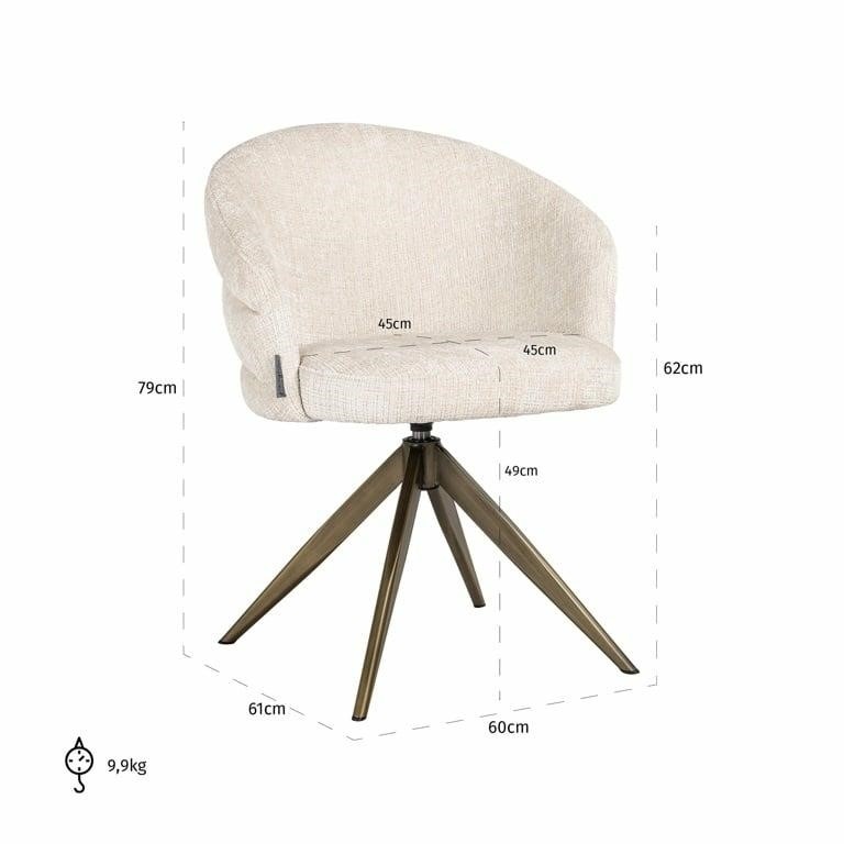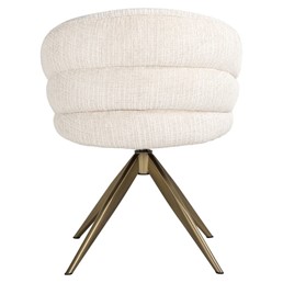 Krzesło obrotowe Zendaya to połączenie luksusu i funkcjonalności, które wnosi prestiż do każdego wnętrza. Pokryte beżową tkaniną szenilową, oferuje wyjątkowy komfort i elegancki wygląd, a subtelne detale wzmacniają jego wyrafinowany charakter. Złota metalowa podstawa z mechanizmem obrotowym 360° zapewnia stabilność i wygodę, sprawiając, że Zendaya to idealny wybór do biura lub gabinetu, łącząc styl z wysoką jakością.