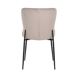 - Dzięki smukłej sylwetce, czarnej metalowej podstawie i zgrabnemu siedzisku w aksamitnym beżowym odcieniu.