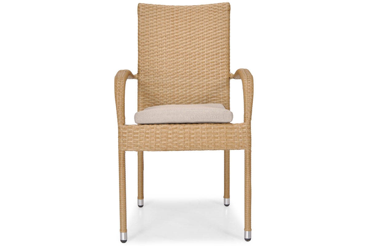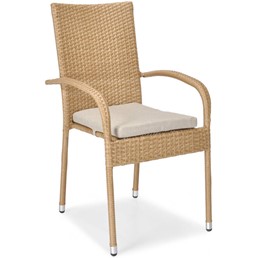 To eleganckie krzesło ogrodowe wykonane jest z trwałego, technorattanu. W zestawie dołączone są darmowe poduszki, które dodają wygody podczas użytkowania. Krzesła charakteryzują się solidną konstrukcją oraz ponadczasowym designem. Ich ergonomiczne wyprofilowanie i obecność podłokietników zapewniają doskonały komfort podczas wypoczynku i relaksu na świeżym powietrzu.