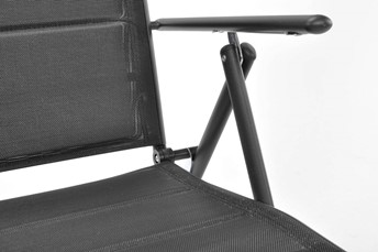 Meble ogrodowe MODENA doskonale nadają się do użytku na zewnątrz. Wykonane są z najwyższej jakości materiałów odpornych na warunki atmosferyczne. Dzięki temu zachowują nienaganny wygląd przez wiele lat. Ramy mebli wykonane są z aluminium i są całkowicie odporne na rdzę. Były malowane proszkowo na kolor srebrny. Konstrukcja krzeseł jest stabilna i wytrzymała, maksymalne obciążenie krzesła to 120 kg. Krzesła składane są lekkie i łatwe do przechowywania. Oparcie i siedzisko wykonane z ciasnej i brudnej tkaniny. Plamy można zetrzeć wilgotną szmatką. Krzesła posiadają podłokietniki wykonane z tego samego materiału co blat stołu. Kąt oparcia krzesła można dostosować do własnych potrzeb. Oparcie można ustawić na 9 różnych poziomach.