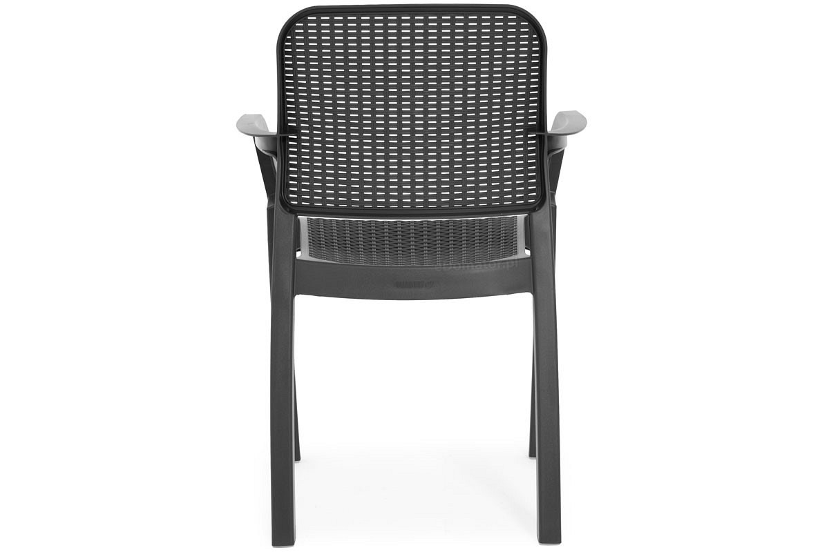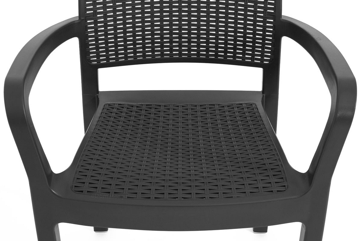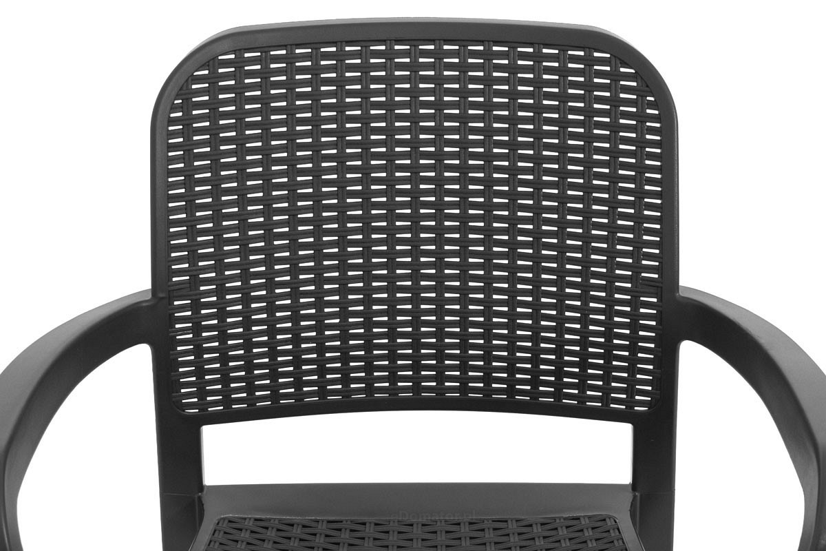 Funkcjonalne plastikowe krzesło ogrodowe SAMENNA w stylu rattanu, kolor grafitowy. Fotel krzesło balkonowe to idealny mebel na taras i przydomowy ogródek. Konstrukcja krzesła ogrodowego jest w całości wykonana z polipropylenu. Jest to tworzywo bardzo odporne na temperaturę, promienie UV i wodę. Fotel może być użytkowany w temperaturach od 0oC do 40oC, dzięki czemu idealnie sprawdzi się w sezonie wiosenno-letnim. Krzesła można sztaplować np. umieszczone jeden na drugim, co jest bardzo wygodne do przechowywania. Dzięki mocnej konstrukcji krzesło może być obciążone ciężarem do 110 kg, służy wyłącznie do siedzenia i nie można na nim stać. Ergonomicznie zaprojektowany kształt oparcia oraz głębokie siedzisko zapewniają maksymalny komfort.