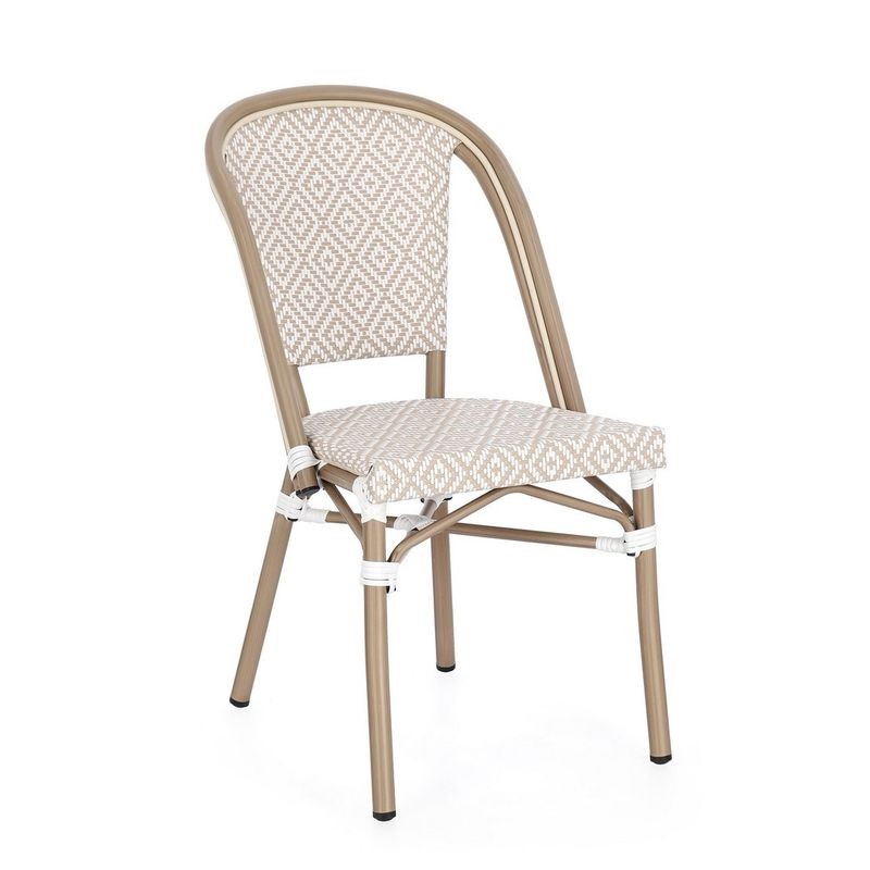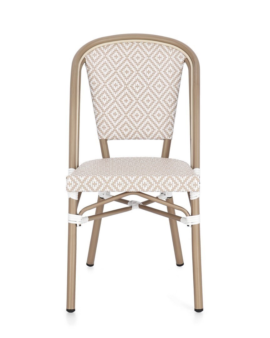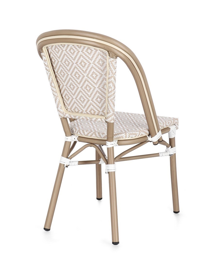 Krzesło SILVEIRA to przykład nowoczesnego podejścia do aranżacji ogrodu. Wykonane z tworzywa sztucznego w formie plecionki, zapewnia dobrą wentylację i komfort użytkowania nawet w upalne dni. Dzięki solidnej podstawie i ergonomicznej formie, mebel doskonale sprawdza się zarówno przy stole, jak i jako samodzielny element wypoczynkowy. Neutralna kolorystyka pasuje do wielu aranżacji i podkreśla charakter przestrzeni.