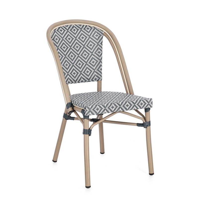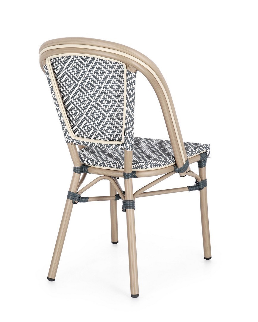Krzesło SILVEIRA to przykład nowoczesnego podejścia do aranżacji ogrodu. Wykonane z tworzywa sztucznego w formie plecionki, zapewnia dobrą wentylację i komfort użytkowania nawet w upalne dni. Dzięki solidnej podstawie i ergonomicznej formie, mebel doskonale sprawdza się zarówno przy stole, jak i jako samodzielny element wypoczynkowy. Neutralna kolorystyka pasuje do wielu aranżacji i podkreśla charakter przestrzeni.