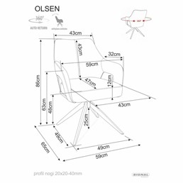 Krzesło Olsen to nowoczesny model zaprojektowany z myślą o wygodzie i estetyce. Miękkie siedzisko oraz ergonomiczne oparcie zapewniają komfort nawet podczas długiego siedzenia, co czyni je idealnym wyborem do jadalni, salonu czy biura. Nowoczesna forma nadaje wnętrzu elegancji i lekkości, a uniwersalny design pozwala na łatwe dopasowanie do różnych aranżacji. Solidna konstrukcja gwarantuje trwałość oraz bezpieczeństwo użytkowania. Olsen to połączenie funkcjonalności, wygody i stylu w jednym modelu.
