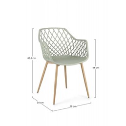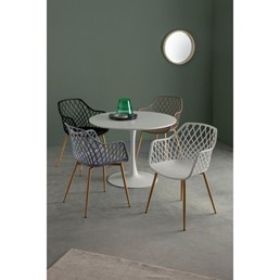 Prezentowane krzesło to połączenie elegancji, wygody i funkcjonalności. Solidna konstrukcja gwarantuje stabilność oraz trwałość użytkowania. Odpowiednio wyprofilowane siedzisko zapewnia komfort oraz nadaje całości nowoczesny i stylowy charakter. Dzięki uniwersalnemu designowi krzesło doskonale sprawdzi się zarówno w domowych wnętrzach, jak i przestrzeniach komercyjnych. Jego subtelna kolorystyka wprowadza do aranżacji ciepło i lekkość. To idealny wybór do jadalni, salonu czy sypialni.
