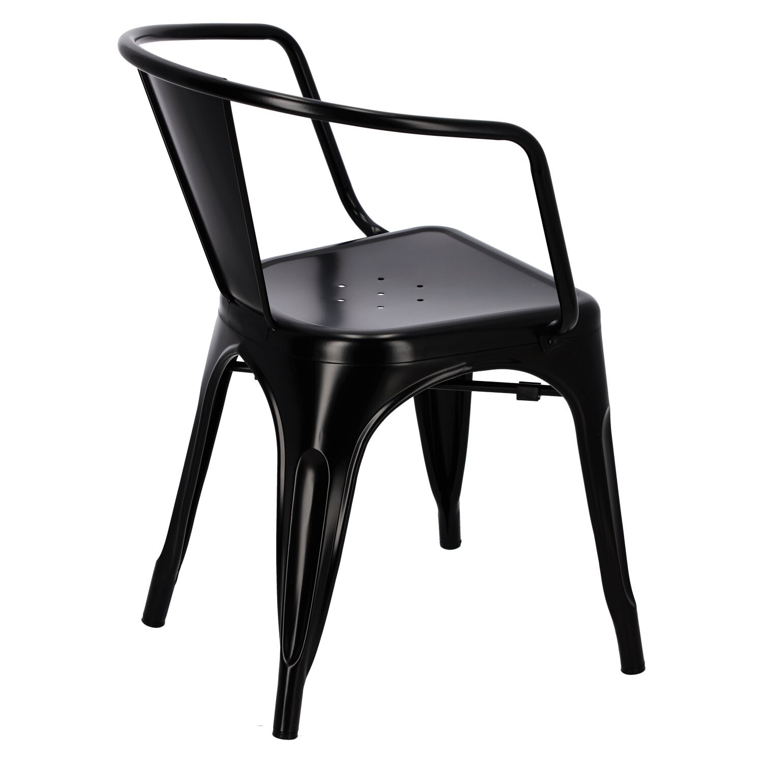 Krzesło Paris Arms w kolorze czarnym to doskonała interpretacja klasycznego stylu bistro. Wykonane z wytrzymałego metalu, zapewnia stabilność i trwałość, jednocześnie nadając wnętrzu industrialnego charakteru. Profilowane oparcie i wygodne podłokietniki gwarantują komfort użytkowania. Świetnie sprawdzi się zarówno w przestrzeniach domowych, jak i komercyjnych – restauracjach czy kawiarniach. To ponadczasowy mebel, który dodaje elegancji każdej aranżacji.