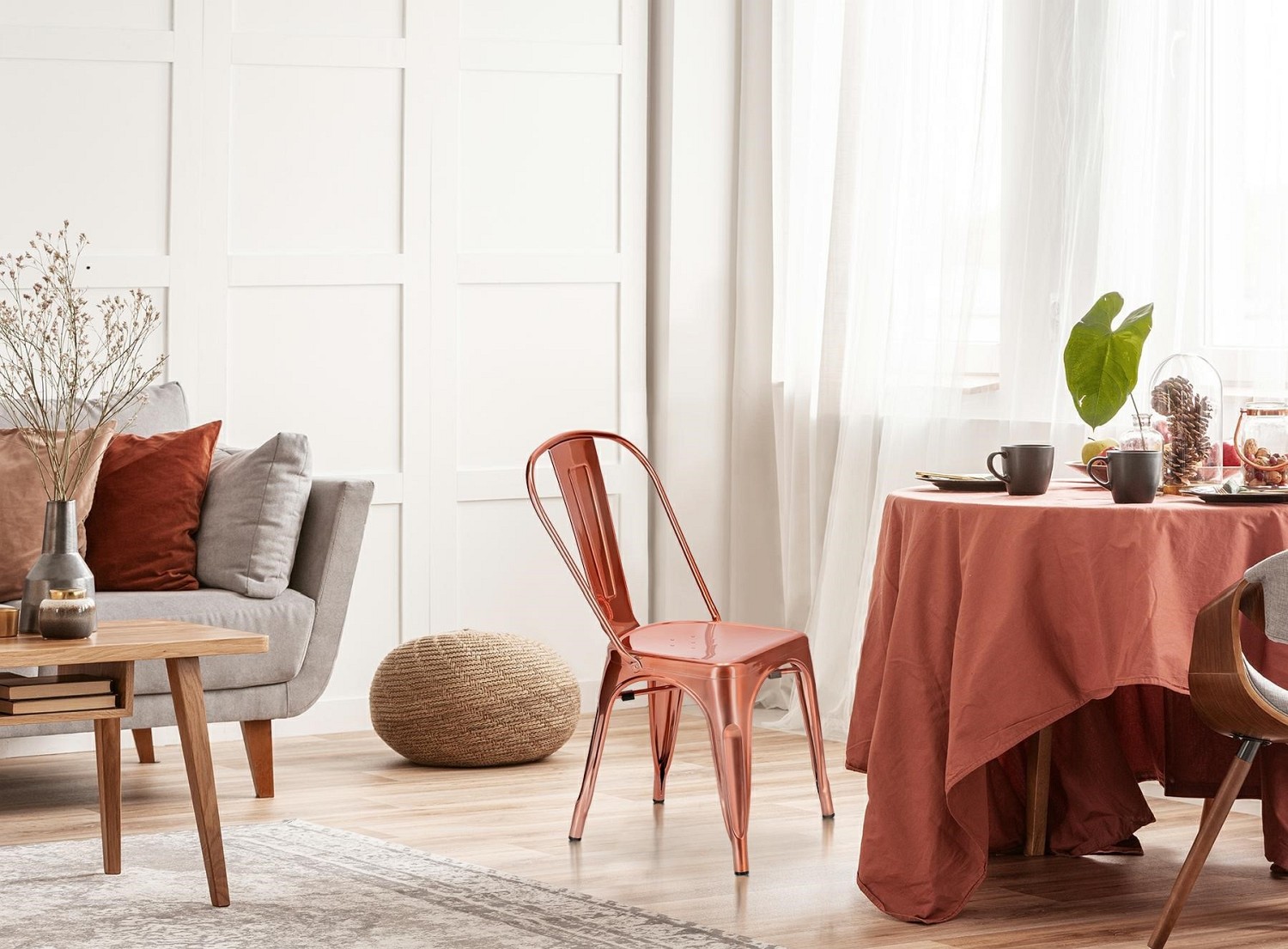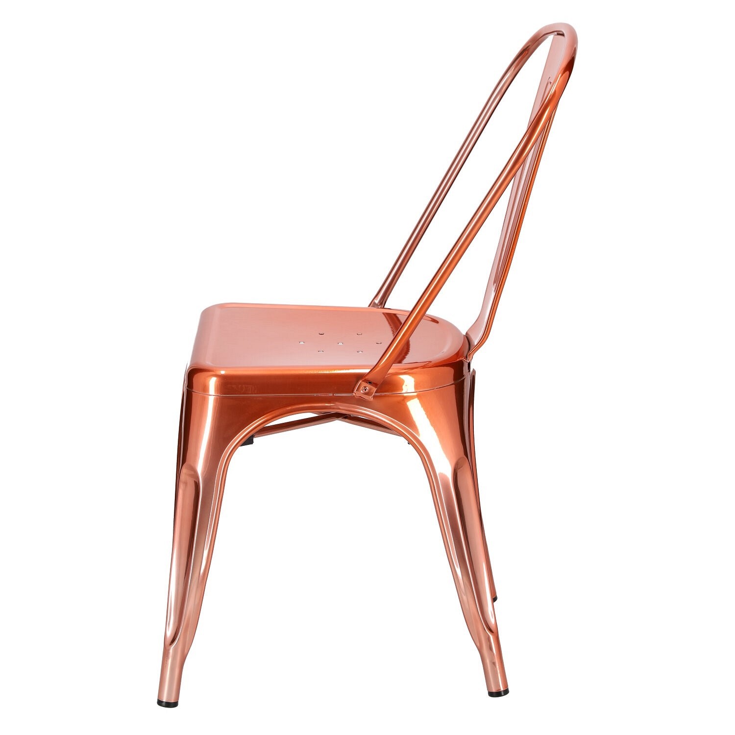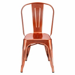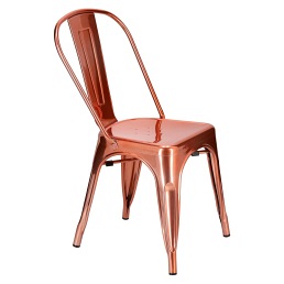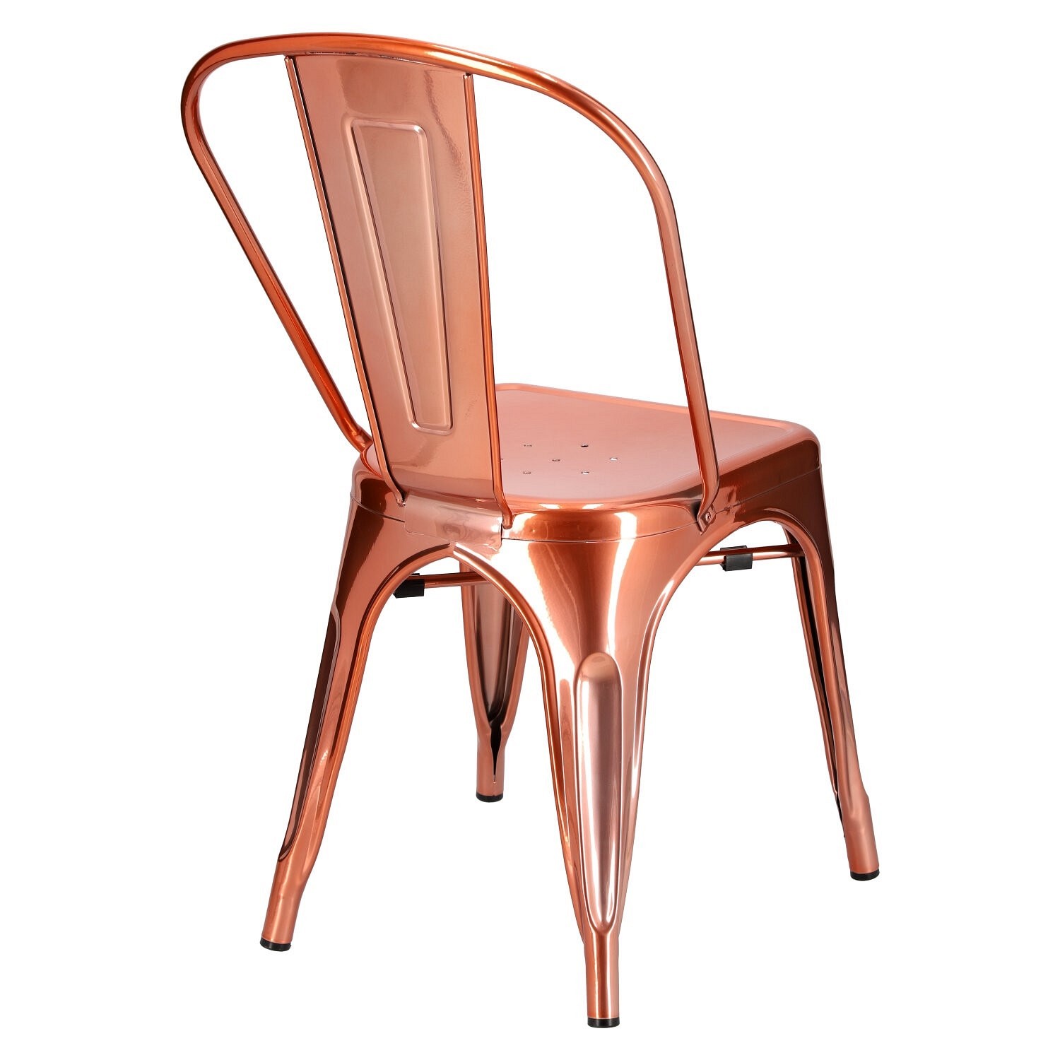 Doskonałe wzornictwo, wysoka jakość i duża wytrzymałość sprawiły, że meble Paris bardzo szybko zadomowiły się w kawiarniach, loftowych jadalniach, czy ogródkach gastronomicznych. Krzesło Paris miedziane wyznacza nowe standardy dla prostych mebli użytkowych. Ciekawa i modna kolorystyka rozjaśni wnętrze. Krzesło Paris miedziane jest dowodem, że metalowe krzesła nie tylko nadają się do loftowych i surowych pomieszczeń. Piękny odcień miedzi uzupełni wnętrze w stylu glamour lub boho. Paris to metalowe lakierowane krzesło, które wykończone jest w połysku. Nóżki krzesła zostały zabezpieczone czarnymi stopkami z tworzywa. Stopki dodają krzesłu stabilności i chronią podłogę przed zarysowaniami. Oparcie krzesła posiada ciekawe wytłoczenie, a rama oparcia przymocowana do siedziska jest również uchwytem, za który krzesło możemy podnosić. Nogi krzesła wzmocnione zostały dodatkowo krzyżakiem pod siedziskiem. Krzesło posiada możliwość sztaplowania. Wymiary kartonu: 53 x 48 x 126 cm Waga: 19,6 kg