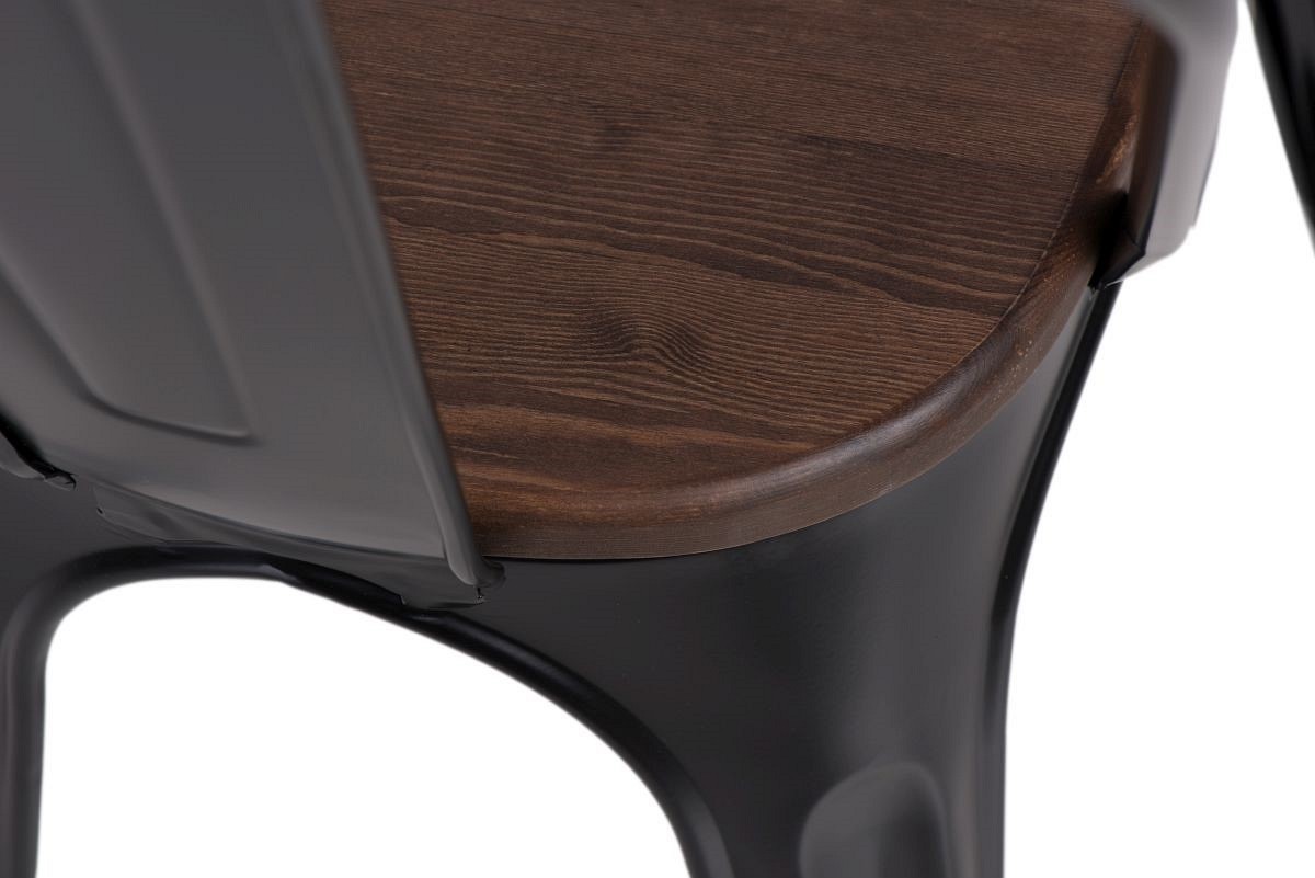 Krzesło Paris Wood to designerskie połączenie surowego drewna i lakierowanego metalu. Dopełnieniem całości będzie blat, wykonany z sosnowego drewna w wybarwieniu orzechowym. Lakierowana powierzchnia drewnianego siedziska jest gładka i łatwa do utrzymania w czystości. Lakier wnikając w strukturę orzechowego blatu, uwypukla walory drewna. To połączenie dodaje smaku całości kompozycji i sprawia, że mebel zyskuje niepowtarzalny wygląd. Całość projektu to wyjątkowa forma użytkowa. Krzesło Paris Wood występuje w kilku wariantach kolorystycznych.Krzesło posiada certyfikaty en 581-1:2017 i en 581-2:2016.