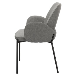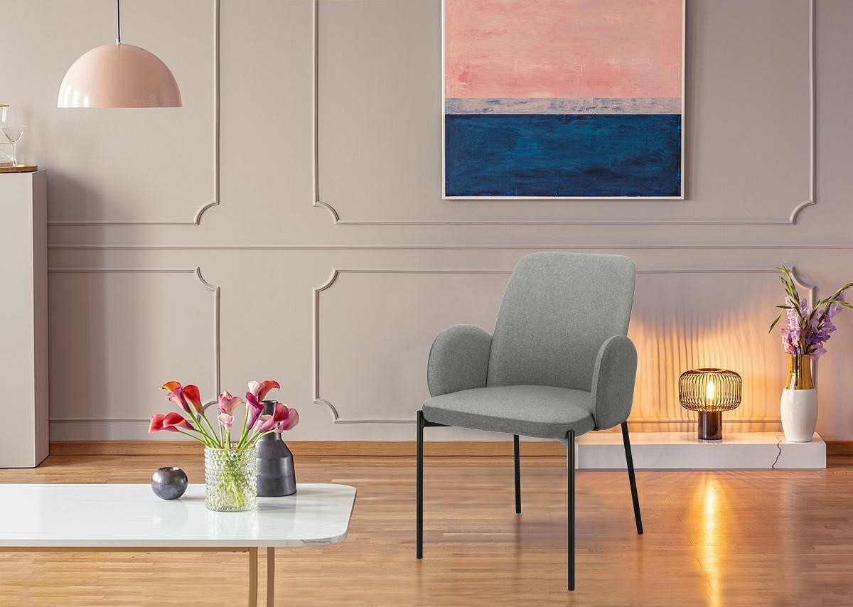 Krzesło Perro to czarujący element wyposażenia, który doskonale sprawdzi się w każdej stylowej jadalni lub salonie. Krzesło Perro to idealne siedzisko do wnętrz zarówno w nowoczesnych, jak i tradycyjnych aranżacjach. Ze względu na swoją formę oraz obicie przyjemną w dotyku tkaniną krzesło charakteryzuje się ergonomicznością i wygodą, a dzięki solidnemu, metalowej podstawie jest też wytrzymałe i stabilne. Krzesło wypełnione jest miękką gąbką. Dodatkowy atut stanowią połączone ze sobą designerskie podłokietniki, które ciągną się aż po wewnętrznej stronie oparcia, dzięki któremu mebel zyskuje eleganckiego charakteru. Krzesło zostało obite tkaniną w dwóch odcieniach szarości, które idealnie komponują się z czarnymi nogami krzesła. Szerokość siedziska: 47cm Głębokość siedziska: 45cm Wymiary kartonu: 60x60x70cm Max. ilość szt. w kartonie: 2