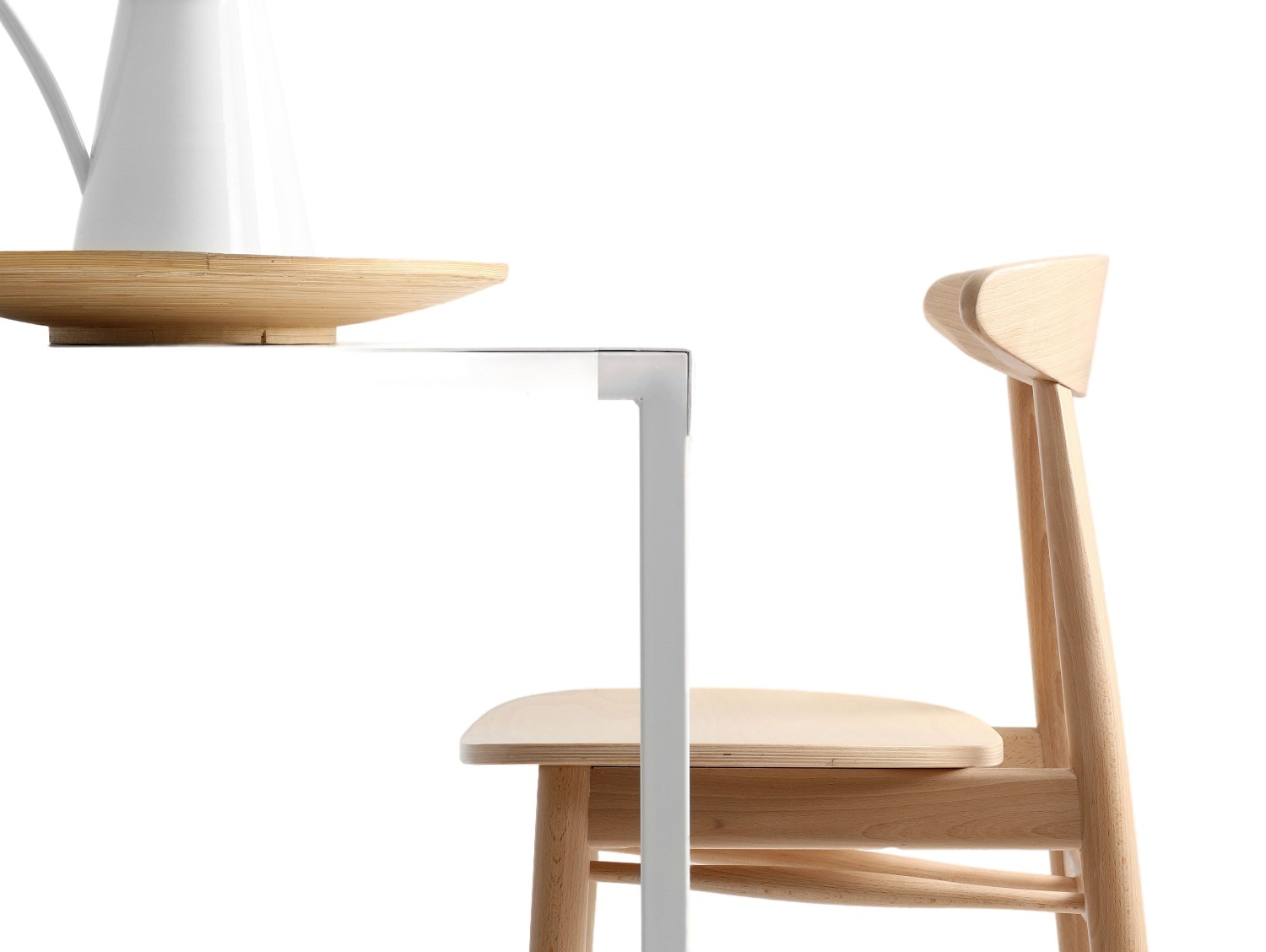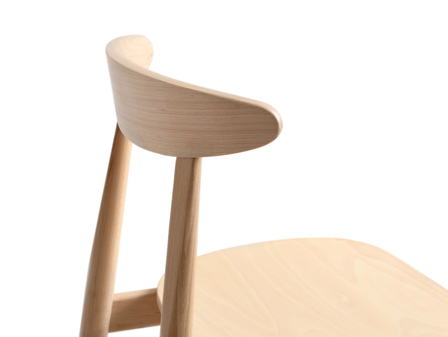 Lekko zaokrąglone siedzisko oraz oparcie w kolorze jasnego, miodowego dębu.
