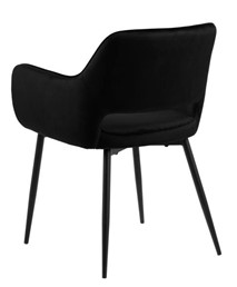 Krzesło Ranja to ponadczasowe krzesło z „dziurą”. Doskonale sprawdzi się w nowoczesnych wnętrzach, przestrzeniach restauracyjnych czy pokojach hotelowych. Niezwykły kształt krzesła uzyskano dzięki lekko kanciastemu kształtowi. Krzesło jest obite trwałą czarną tkaniną Dublin 50. Nogi metalowe malowane proszkowo na czarno.