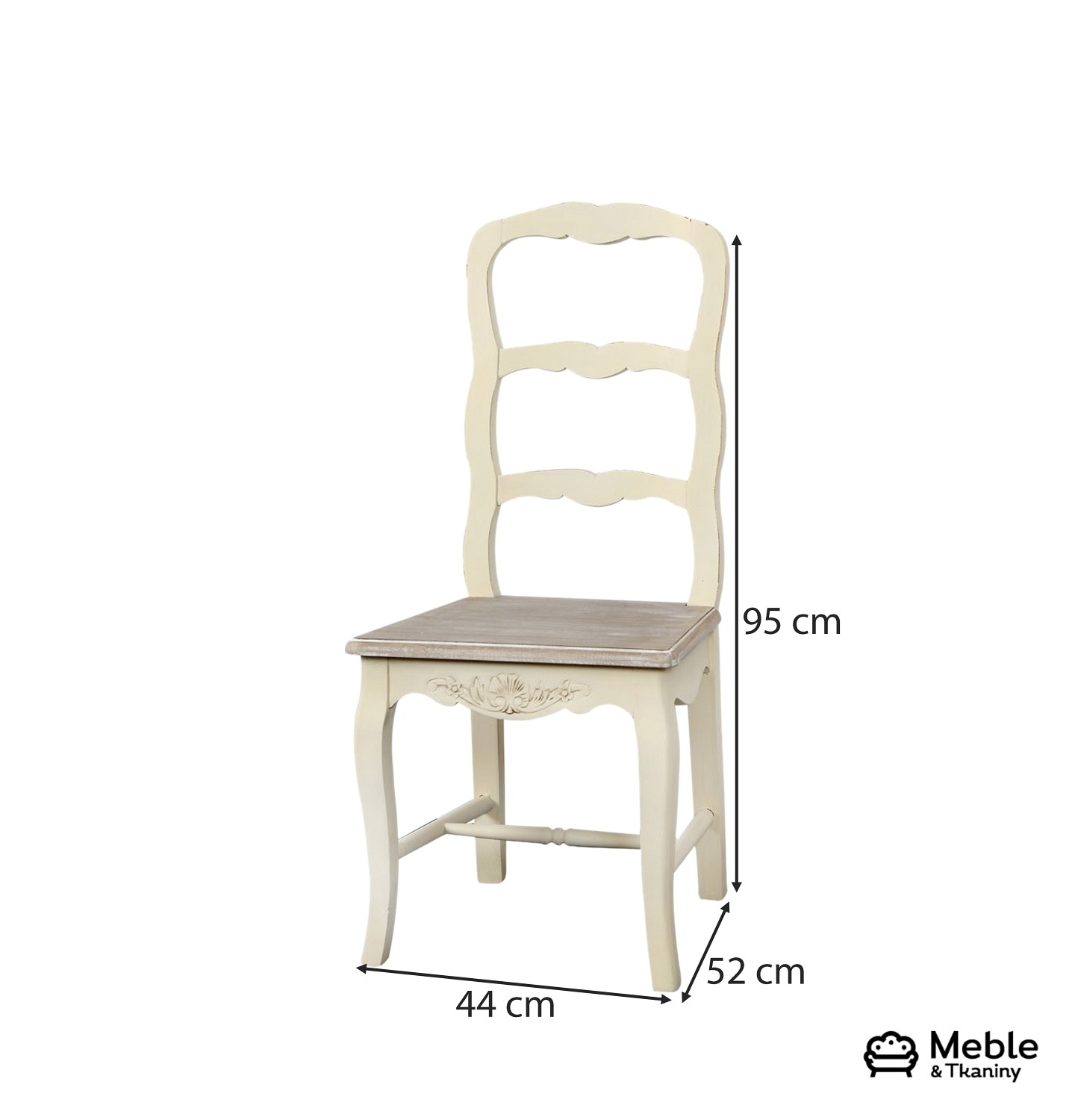 Dopracowane w każdym calu. Ręcznie malowane, prawdziwy majstersztyk francuskiego wzornictwa. Połączenie francuskiego pałacu z prowansalską swobodą. Krzesło Rimini wykonane jest z drewna topoli oraz z płyty mdf. Elegancką kolorystykę beżu zestawiono z brązowym siedziskiem krzesła, które zostało stylowo pobielone. Praktyczna ozdoba Twojego domu.