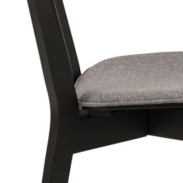 Krzesło do jadalni Roxby ma klasyczny kształt z nowoczesnymi akcentami. Dzięki surowemu wzornictwu świetnie prezentuje się we wnętrzach nowoczesnych i na poddaszu. Krzesło Roxby wykonany jest z trwałych i wygodnych materiałów - przyjemnej w dotyku tkaniny i litego drewna kauczukowego w czarnym kolorze. Nowoczesne krzesło Roxby sprawdzi się w kuchni lub salonie dzięki swoim niewielkim rozmiarom. Krzesło z podstawą z litego drewna Roxby tworzy zestaw ze stołem o tej samej nazwie.