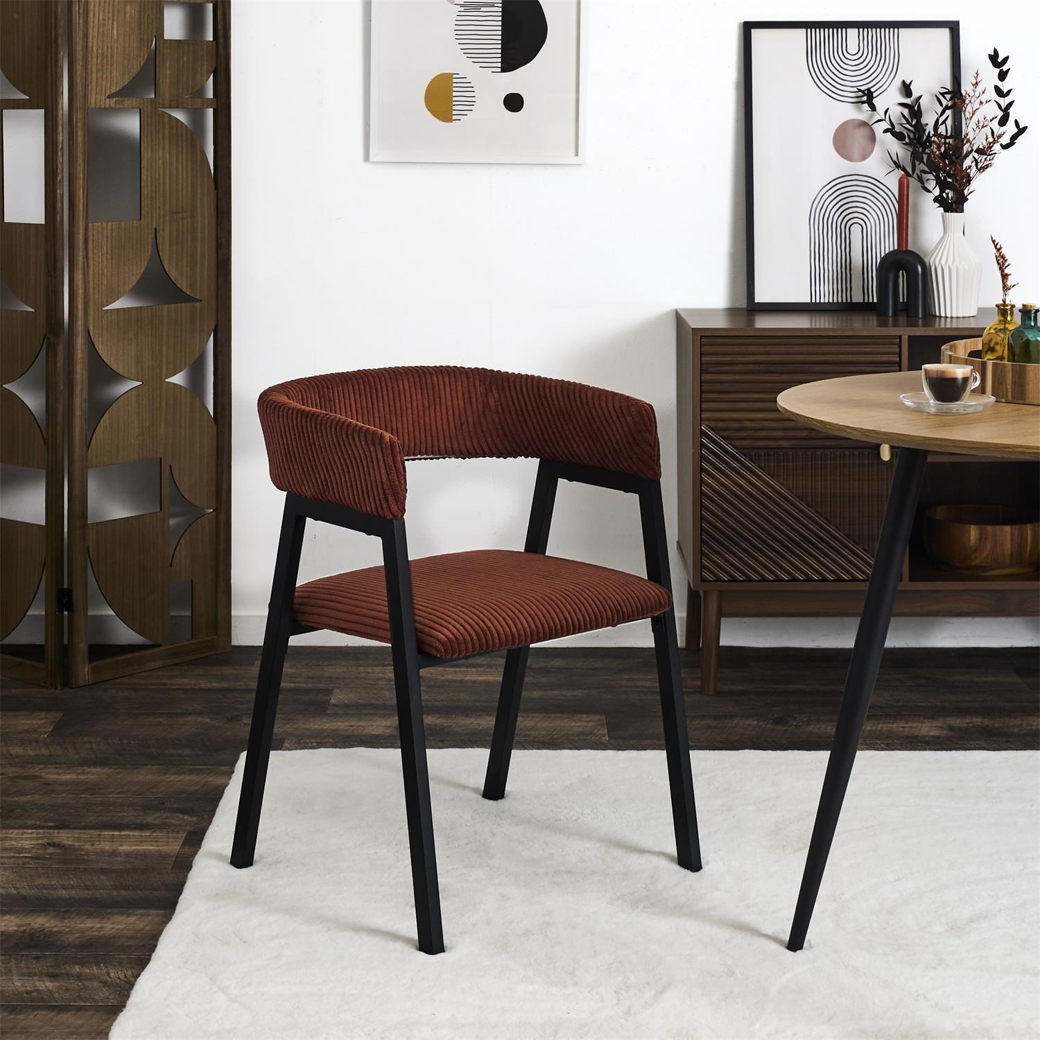 Krzesło Scott wyróżnia się modną sztruksową tapicerką, która nadaje mu przytulnego, a jednocześnie nowoczesnego charakteru. Miękkie siedzisko i dobrze wyprofilowane oparcie zapewniają wygodę podczas codziennych posiłków, pracy lub spotkań towarzyskich. Solidna konstrukcja sprawia, że krzesło jest stabilne i trwałe, a kontrastowe zestawienie materiałów podkreśla jego designerski wygląd. Scott to propozycja dla osób, które chcą dodać wnętrzu charakteru, nie rezygnując z funkcjonalności i komfortu.