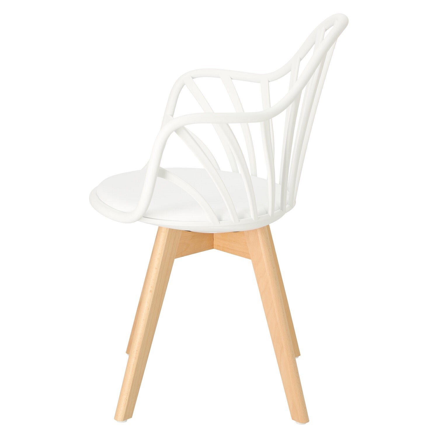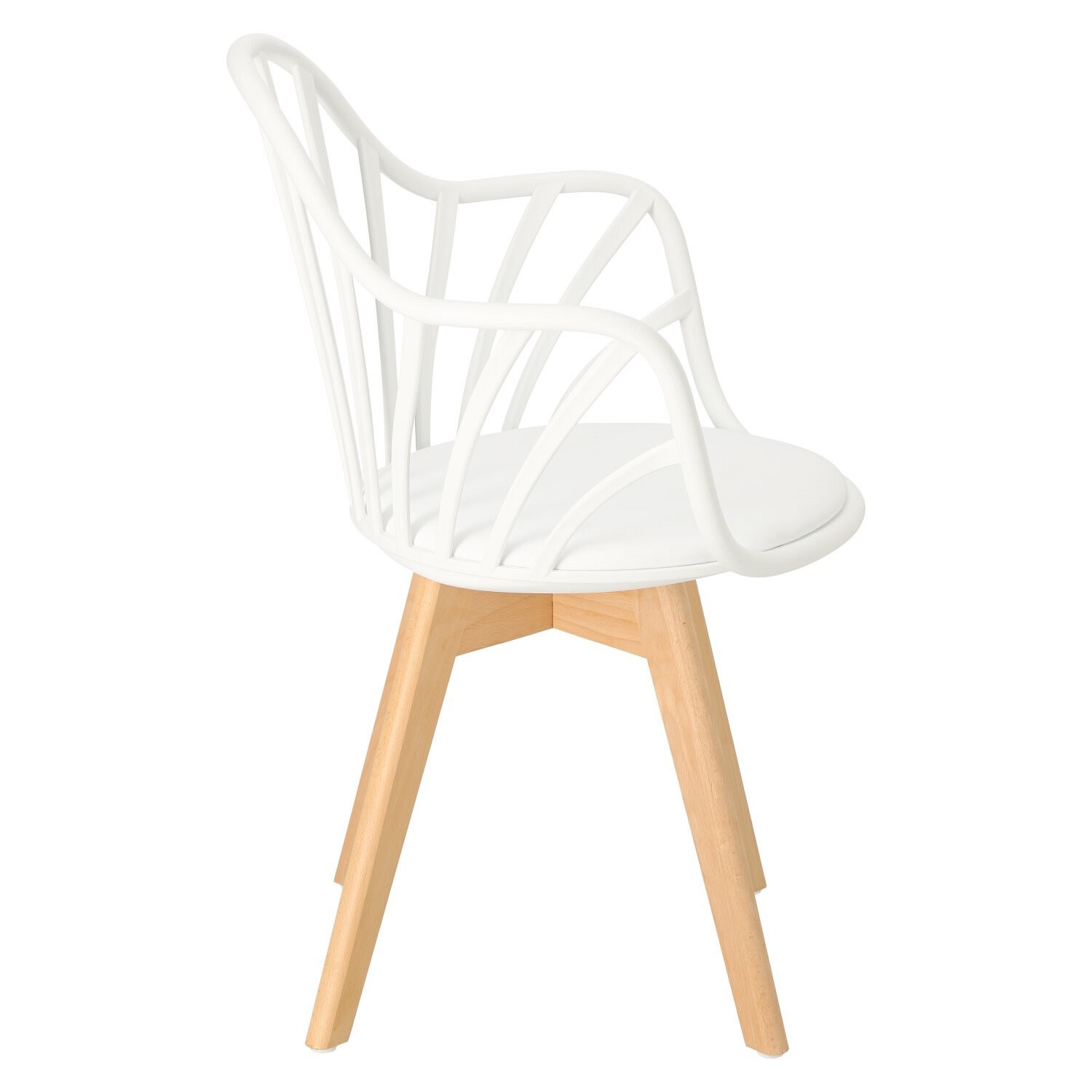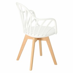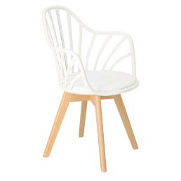 Krzesło Sirena doskonale odnajdzie się w nowoczesnej aranżacji, zarówno jadalnianej, jak i biurowej, stając się jej wizytówką. Wyposażony został w miękką poduszkę, pokrytą eko skórą w kolorze białym, która zapewni maksimum komfortu każdemu użytkownikowi. Praktyczne otwory w oparciu nadają całości oryginalnego wyglądu, jednocześnie gwarantując odpowiedni poziom wentylacji. Krzesło posiada podłokietniki, które gwarantują wygodne oparcie dla rąk. Podstawę krzesła stanowią nogi z drewna bukowego, trwałego i wytrzymałego, co gwarantuje użytkowanie przez długie lata. Usytuowany na niej siedzisko, wykonane zostało z polipropylenu. Polipropylen charakteryzuje się doskonałą wytrzymałością i odpornością na wodę, temperaturę i uszkodzenia mechaniczne. Tworzywo jest bardzo łatwe w utrzymaniu czystości, zatem bez problemu usuniesz z niego wszelkie zabrudzenia. Wymiary kartonu: 64x58x75 cm Max. ilość szt. w kartonie: 4