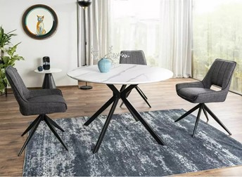 Krzesło TELLO Bjorn to połączenie nowoczesnego designu i komfortu użytkowania. Tapicerka wykonana z tkaniny Bjorn zapewnia miękkość i wygodę, a stelaż z czarnego matowego metalu gwarantuje stabilność i trwałość. Krzesło wyposażone jest w funkcję auto-return, dzięki której siedzisko obraca się w zakresie 180 stopni i automatycznie wraca do pierwotnej pozycji.