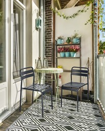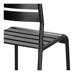 Krzesło Terra to minimalistyczny mebel, który doskonale sprawdzi się na balkonie, tarasie lub w ogrodzie. Wykonane w całości z metalu, jest odporne na warunki atmosferyczne. Lakierowane proszkowo, zachowuje swój atrakcyjny wygląd przez wiele sezonów. Poziome listwy na siedzisku gwarantują wentylację i wygodę użytkowania. To idealny wybór dla tych, którzy cenią prostotę i funkcjonalność w meblach ogrodowych.