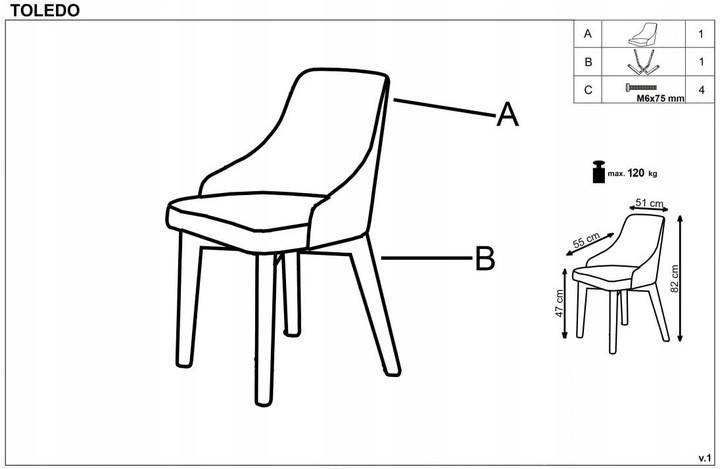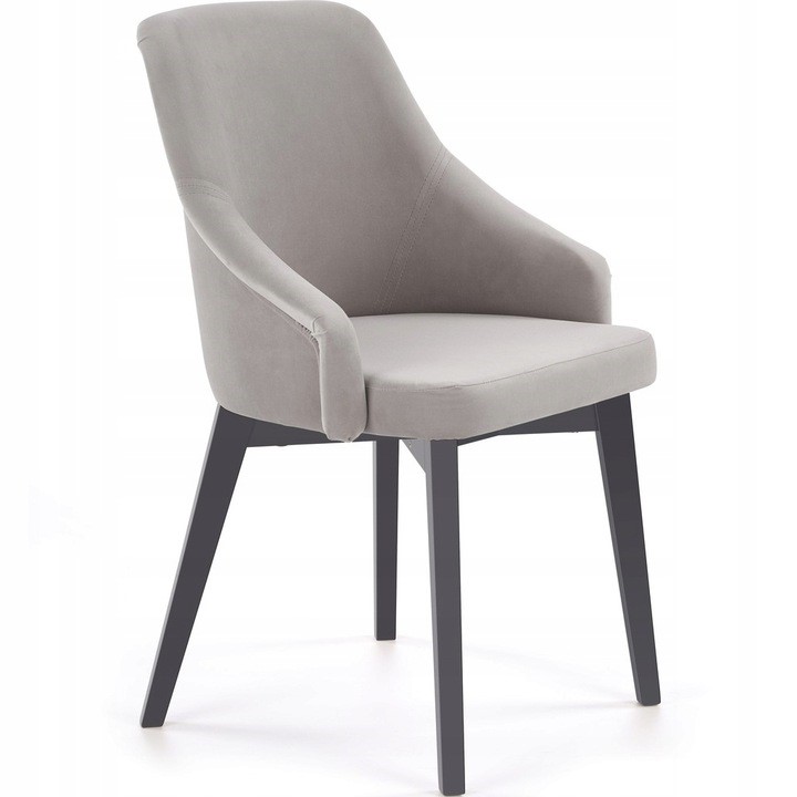 Krzesło TOLEDO 2 to bardzo wygodne krzesło wyściełane, z lekko zaokrąglonym oparciem, co zapewnia odpowiednie podparcie pleców i komfort przy stole. Do pokrycia krzesła użyto modnej szarej tkaniny. Nogi krzesła wykonane są z litego drewna bukowego w ciepłym odcieniu miodowego dębu. Przedstawione krzesło tapicerowane zostało wykonane w Polsce z dużą dbałością o szczegóły.