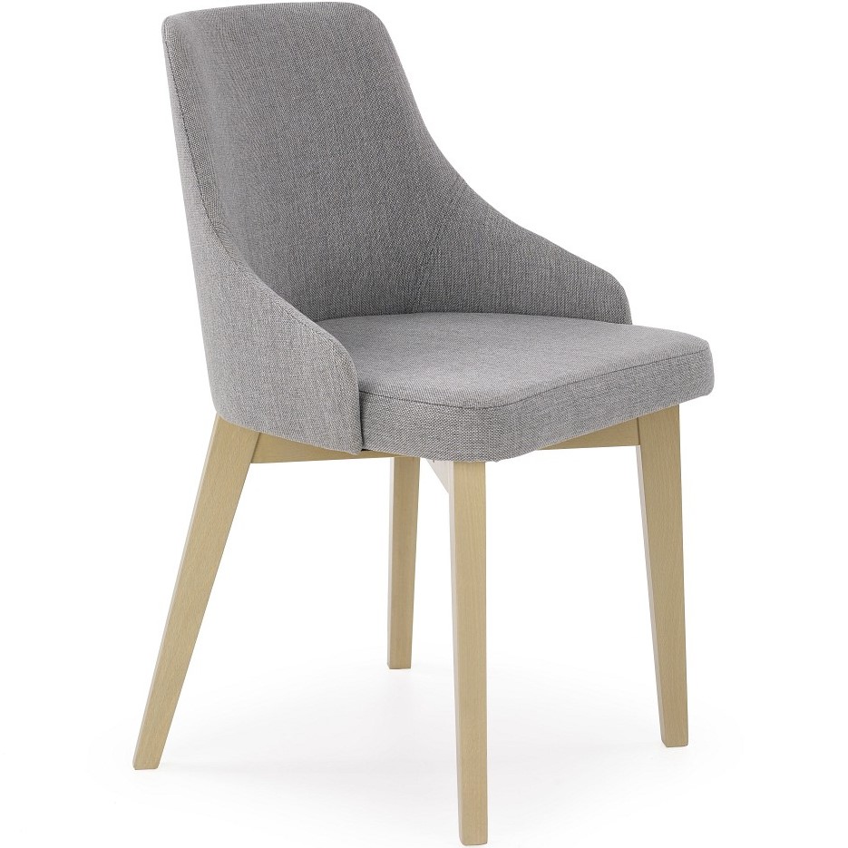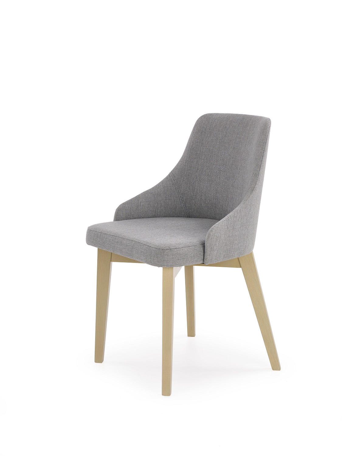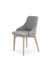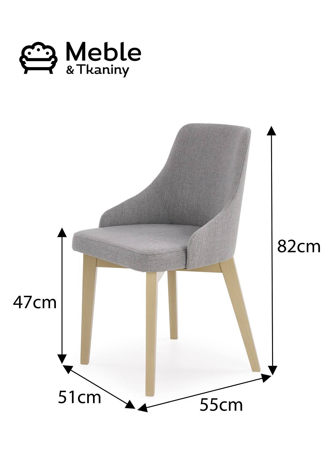 <p> TOLEDO to stylowe krzesło nawiązujące do mebli wypoczynkowych. Stelaż wykonany jest z litego drewna bukowego, a miękkie oparcie i siedzisko obszyte jest trwałą tkaniną. Elementem charakterystycznym krzesła jest kunsztowne oparcie obejmujące część lędźwiową.</p> <p>Krzesło oferujemy w dwóch wariantach: z białym stelażem i brązową tkaniną z wzornika INARI oraz ze stelażem w kolorze dąb sonoma z szarą tapicerką z wzornika INARI.</p>