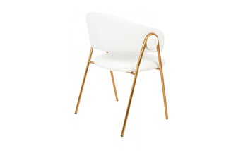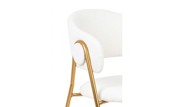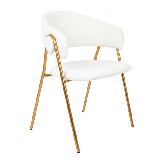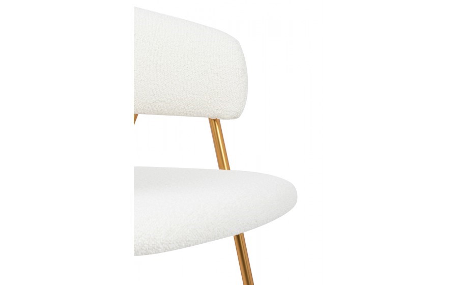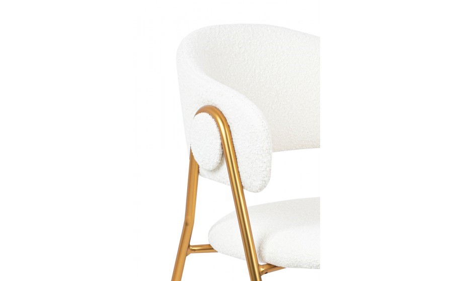 Krzesło VERSO BOUCLE to perfekcyjne połączenie elegancji, wygody i nowoczesnego designu, które wniesie do każdego wnętrza niepowtarzalny urok. Oparcie i siedzisko tego wyjątkowego krzesła są tapicerowane przyjemną i miękką w dotyku tkaniną boucle, która nadaje mu nie tylko luksusowego wyglądu, ale także zapewnia wyjątkowy komfort siedzenia. Biel tej tkaniny dodaje krzesłu lekkości, jednocześnie podkreślając jego elegancki charakter. Podstawa krzesła została zbudowana z metalu, którego lakierowane wykończenie w satynowym złocie nadaje mu niezwykłej finezji. To połączenie białego boucle i złotej podstawy tworzy harmonijną całość, która doskonale wpisuje się w trendy nowoczesnego designu. Przeszycia na oparciu nie tylko nadają krzesłu charakterystyczny, nowoczesny wygląd, ale także podkreślają precyzję wykonania. Struktura tkaniny boucle sprawia, że wnętrze staje się nie tylko szykowne, ale również przytulne, a krzesło VERSO BOUCLE staje się nie tylko meblem, ale także wyrazem osobistego stylu.