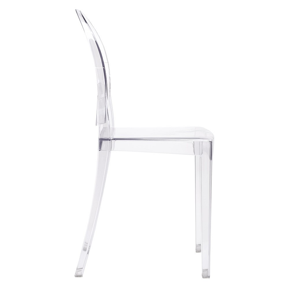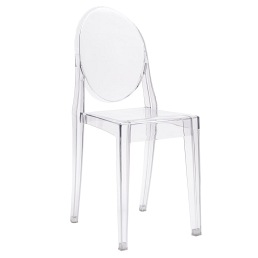 Krzesło Victoria w całości wykonane zostało z transparentnego poliwęglanu. Dzięki temu, optycznie nie zabiera przestrzeni. Doskonale sprawdzi się w nowoczesnych wnętrzach. Krzesło Victoria dostępne jest też w formie Hokera. Waga netto 1 szt.: 4 kg Waga z opakowaniem: 5 kg Maksymalna ilość szt. w opakowaniu: 4 Sposób wysyłki: Paczka Wymiary opakowania:41 cm x 68 cm x 104 cm Produkt złożony: Tak