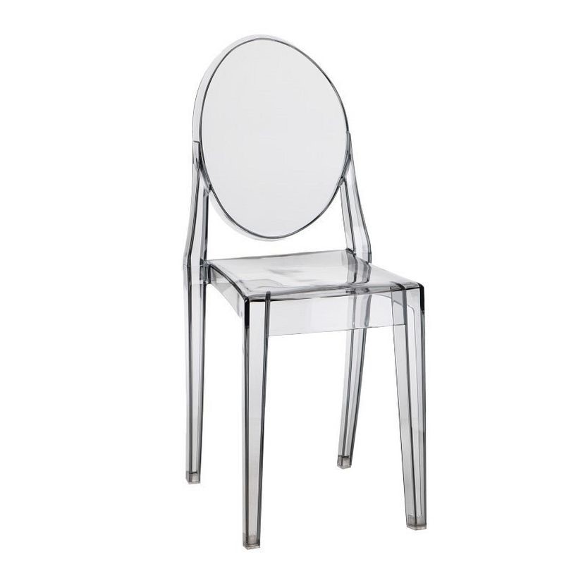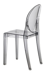 Wykonane z pojedynczego kawałka polycarbonatu, krzesło łączy w sobie czysty design i mocną strukturę z lekkością wyglądu. Zaokrąglona górna część,oparcia kontrastuje z kwadratowym siedziskiem tworząc niespodziewanie elegancką całość. Mimo delikatności formy, krzesło jest stabilne i solidne, a dodatkowo odporne na pogodę.,Prezentowany produkt jest inspirowany projektem Victoria.Maksymalne obciążenie wynosi 120kg