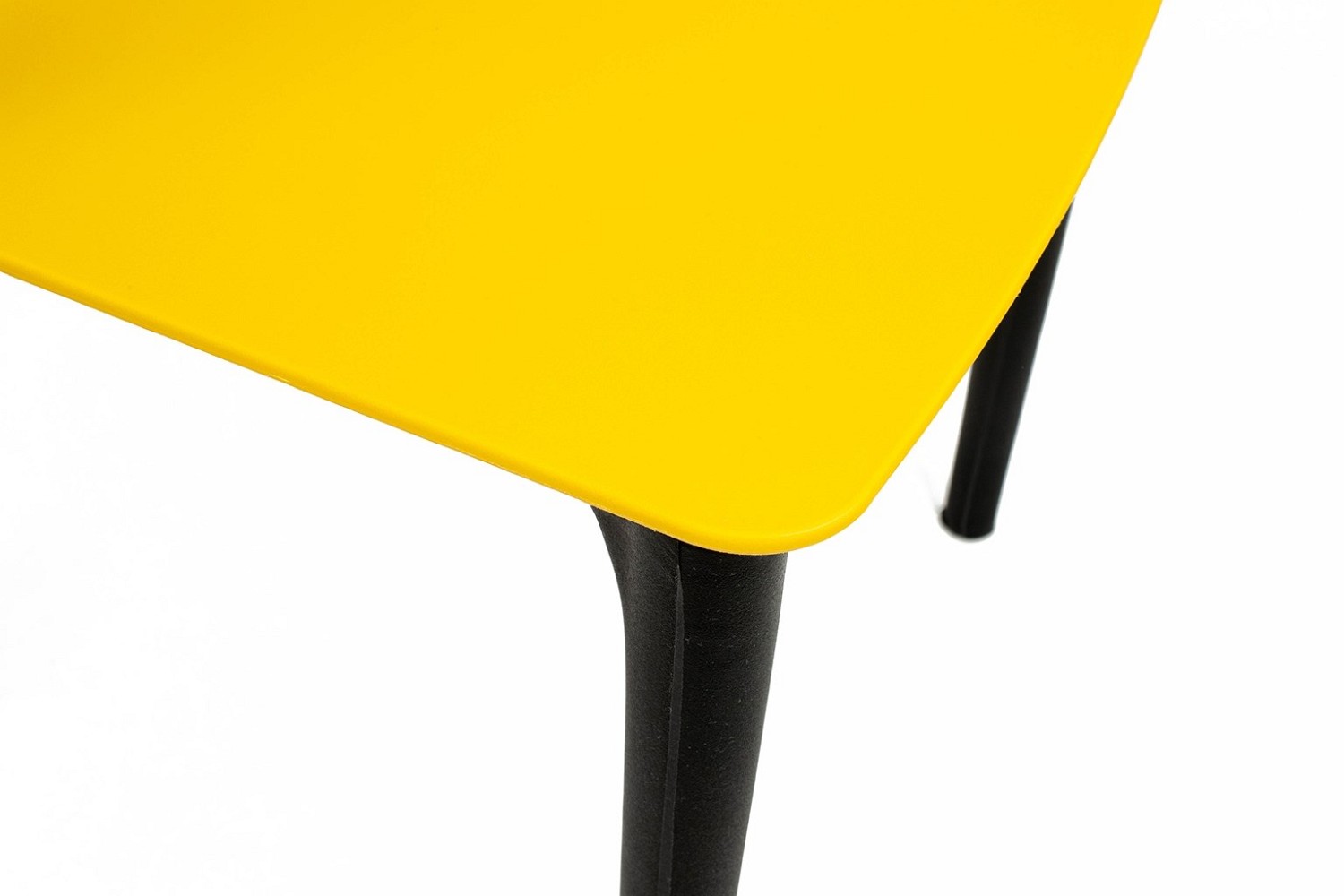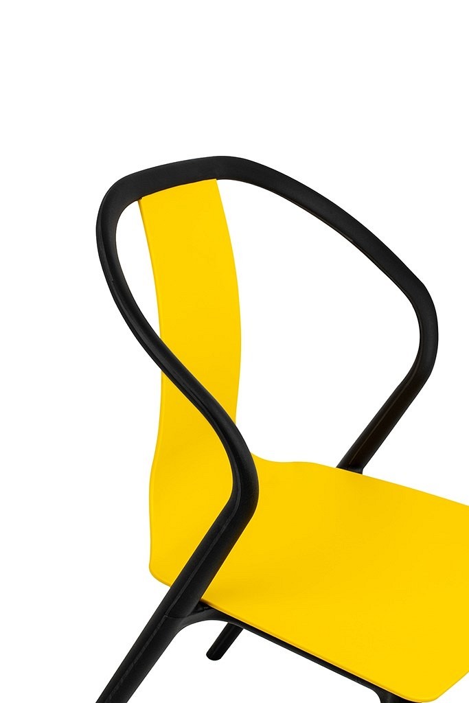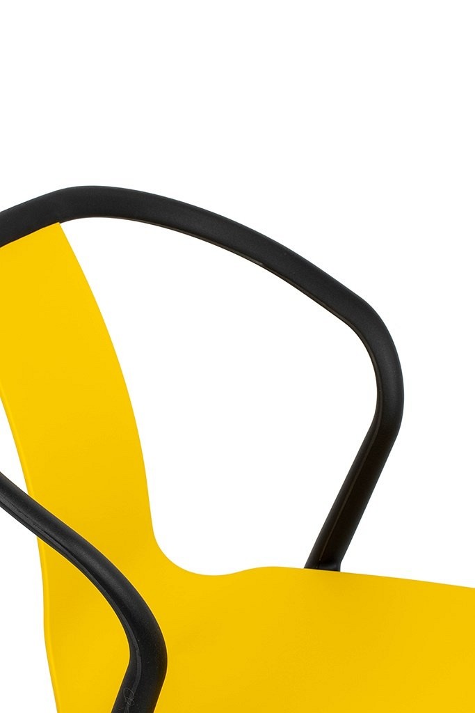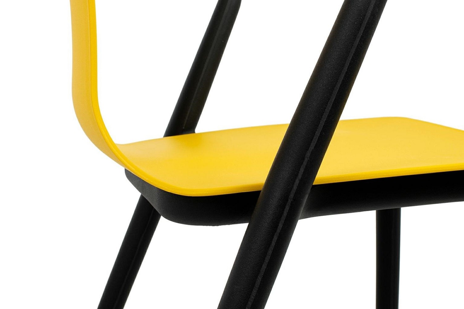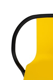 Siedzisko i oparcie zostało wykonane z polipropylenu w kolorze żółtym.