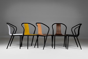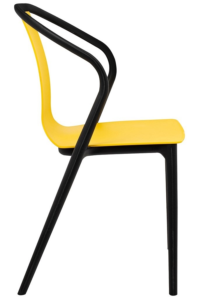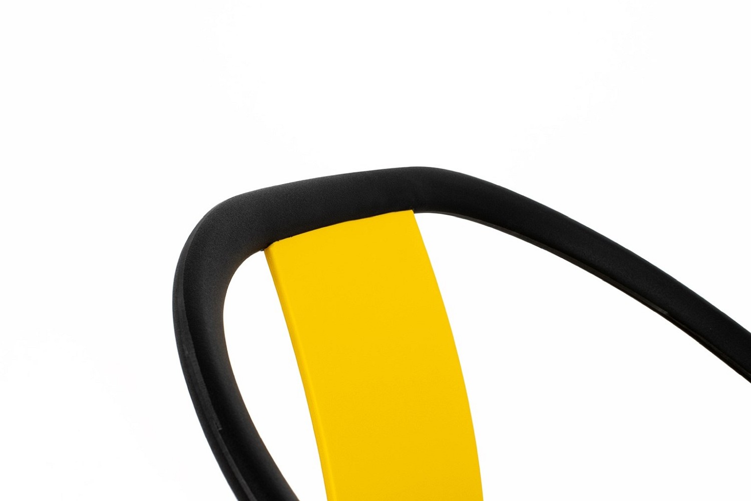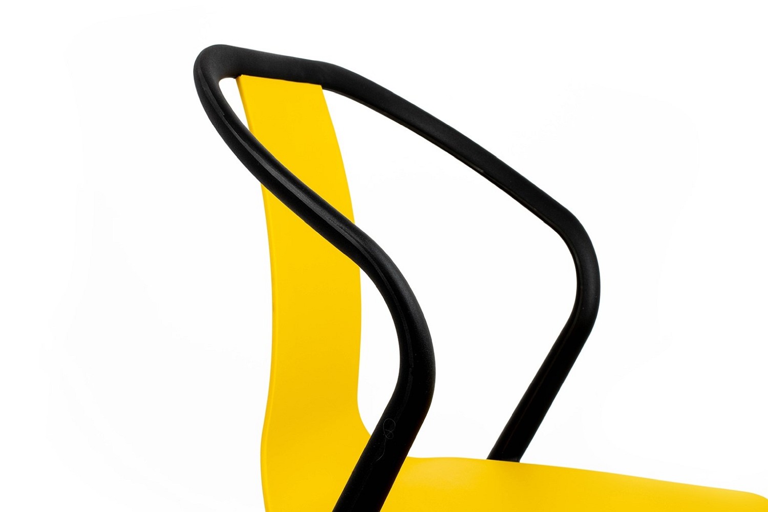 Siedzisko i oparcie zostało wykonane z polipropylenu w kolorze żółtym.
