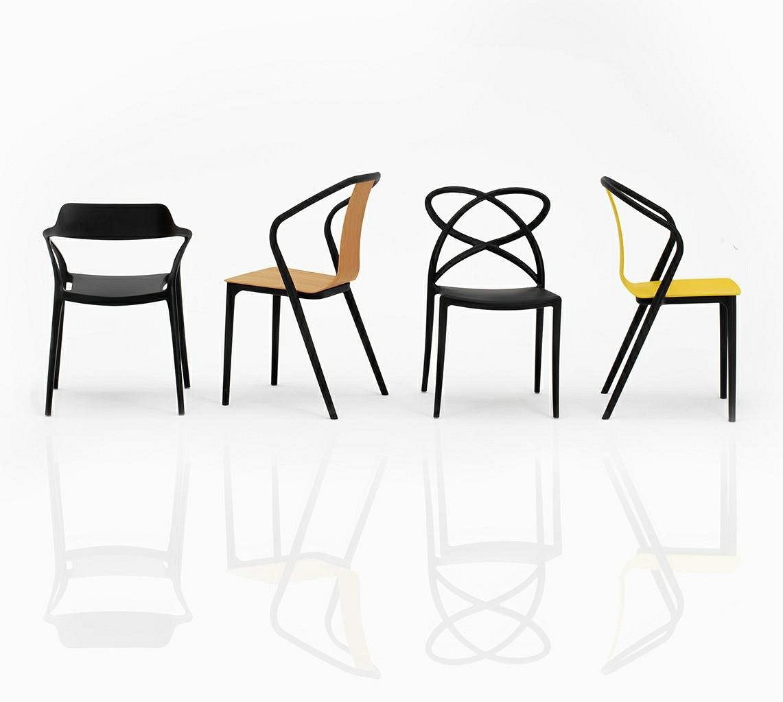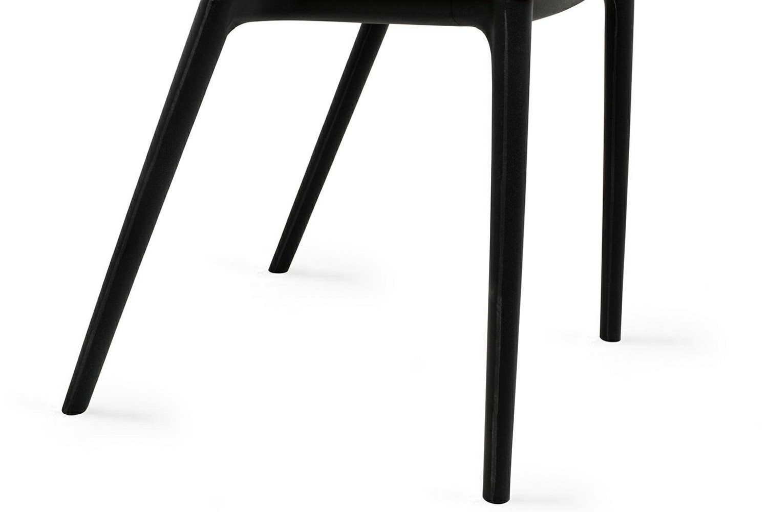 Podstawę i ramę oparcia zrobiono z czarnego polipropylenu z matowym wykończeniem.