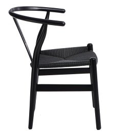 Drewniane krzesło Wicker wykonane zostało z litego drewna. Lekki kształt i ergonomicznie wygięte oparcie powodują, że krzesło jest niezwykle wygodne w użytkowaniu. Siedzisko wykonane jest z plecionki z naturalnego sznurka jutowego o matowym wykończeniu, dzięki czemu całość projektu ze sobą współgra. Podstawa krzesła wykonana z drewna malowanego na kolor czarny posiada półmatowe wykończenie. Krzesło dostępne jest w ofercie w kilku wersjach kolorystycznych. Nie wymaga montażu, maksymalne obciążenie wynosi 120kg. Krzesło wykonane zostało w stylu prowansalskim. Wysokość podłokietników: 74cm Wysokość siedziska: 45cm Głębokość siedziska: 42cm Szerokość siedziska: 49cm Max. ilość sztuk w kartonie:1 Wymiary kartonu:60cmx60cmx75cm