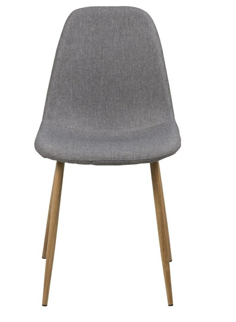 Krzesło Wilma Grey to zgrabny, bardzo nowoczesny mebel. Charakteryzuje je ciekawa tkanina, którą zostało obite. Siedzisko oraz oparcie są lekko wyprofilowane, zapewniając wygodną pozycję do siedzenia. Podstawą krzesła są metalowe nogi w okleinie przypominającej strukturę drewna dębu. To lekkie krzesło o wadze zaledwie 5,48 kg, a jego maksymalne obciążenie wynosi 120 kg.