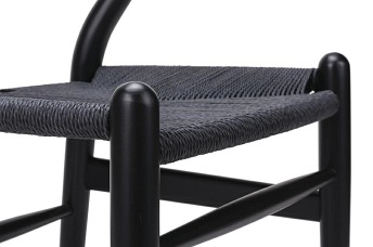 Krzesło Wishbone. Siedzisko wykonane z plecionki z naturalnych włókien w kolorze czarnym. Stelaż z litego drewna bukowego lakierowanego na kolor biały. Maksymalna ilość szt. w opakowaniu: 2 Waga netto: 4,6 kg Waga brutto: 6,6 kg Wymiary paczki: 57 cm x 57 cm x 122 cm Sposób wysyłki: Paczka Produkt złożony: Tak