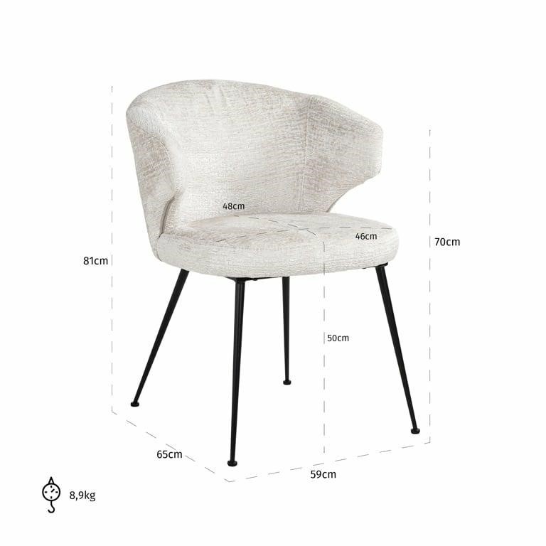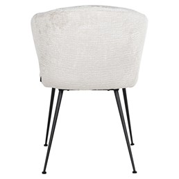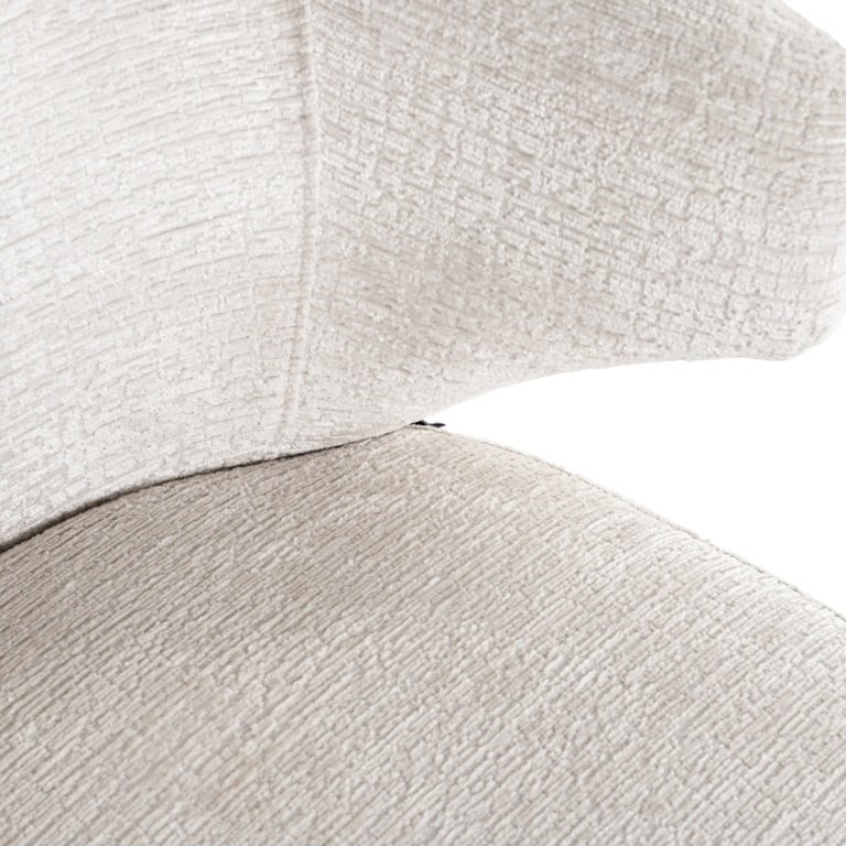 - Kształtne oparcie wykończone modną tkaniną Boucle w jasnym odcieniu