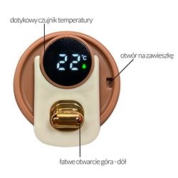 - Dotykowy wyświetlacz LED monitorujący temperaturę napoju