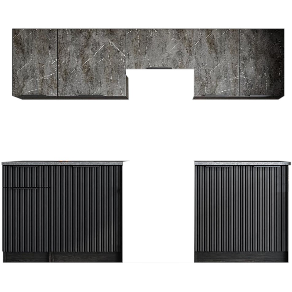 Zestaw mebli kuchennych to znakomita inwestycja do twojego meiszkana. Dzięki niej masz zapewniony cały komplet mebli w atrakcyjnej cenie. Zestaw kuchenny TAMARA zawiera górne szafki w kolorze szarym z efektem marmuru oraz dolnych szafek w kolorze czarnym z dodatkowymi ryflami, może wspaniale uzupełnić aranżację Twojej kuchni. Dodatkowo blat w okleinie dąb sonoma sprawia, że całość jest bardzo spójna i harmonijna. Solidne materiały, sprawią że kuchnia posłuży Ci przeez wiele lat.