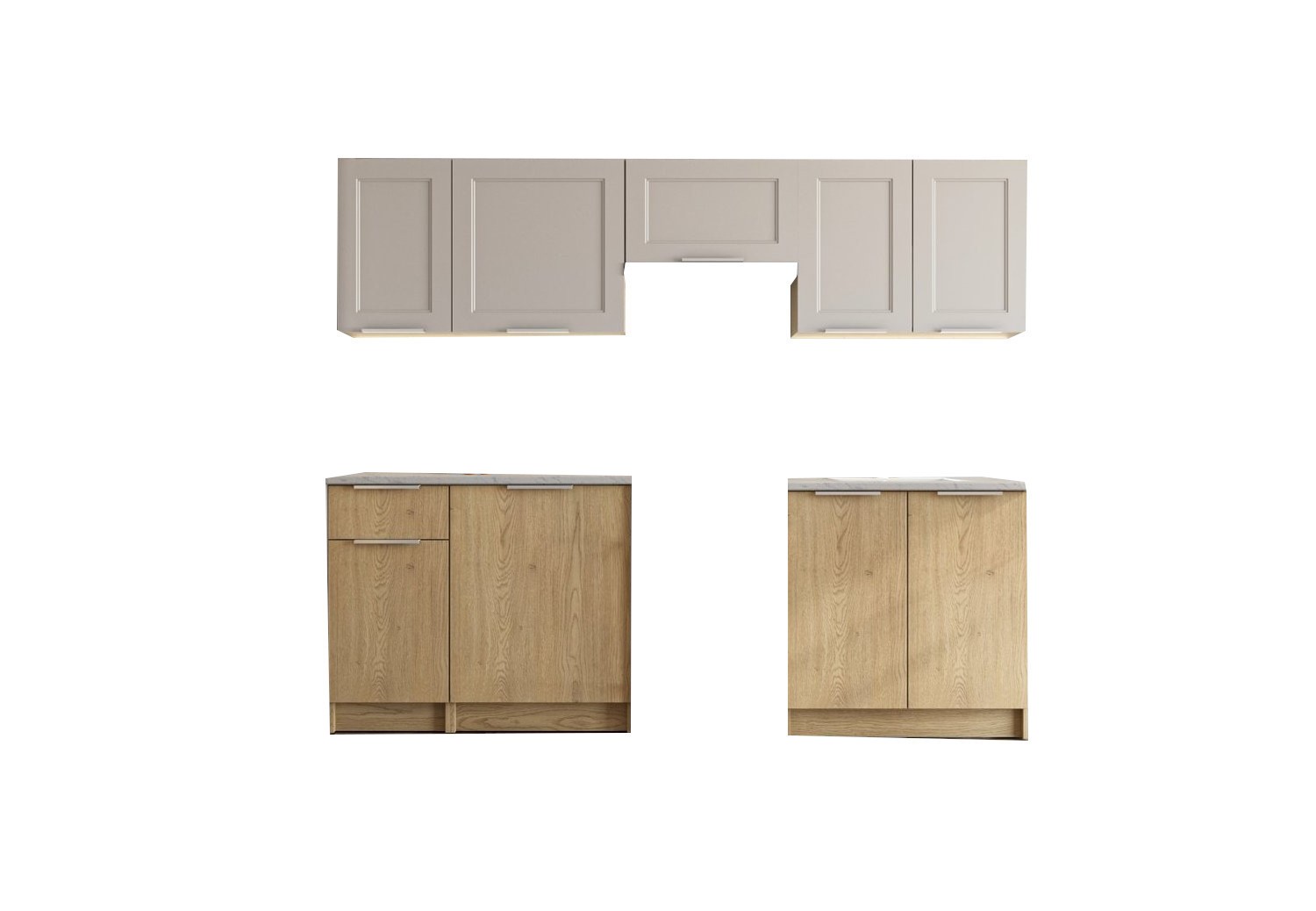 Zestaw mebli kuchennych to idealne rozwiązanie dla osób ceniących funkcjonalność i estetykę w kuchni. Nowoczesny design połączony z wysokiej jakości materiałami sprawia, że meble są zarówno stylowe, jak i trwałe. Przemyślane rozmieszczenie szafek i szuflad zapewnia wygodną organizację przestrzeni, ułatwiając przechowywanie naczyń i akcesoriów kuchennych. Solidne blaty są odporne na zarysowania, wilgoć oraz wysokie temperatury, co gwarantuje ich długowieczność. Ergonomiczne uchwyty i systemy cichego domykania zwiększają komfort codziennego użytkowania.