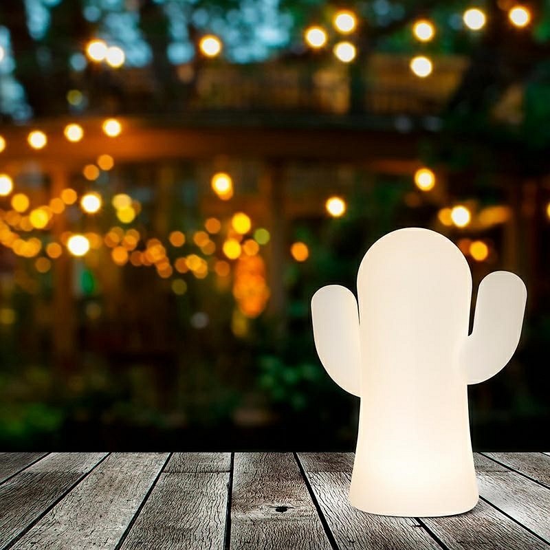 Lampa ogrodowa Panchito Biała Kaktus to ciekawa dekoracja ogrodowa zasilana za pomocą akumulatora. Lampę wykonano z tworzywa sztucznego, dzięki czemu jest lekka i odporna na działanie czynników atmosferycznych. Urządzenie wyposażono w diodę LED, która emituje ciepłe światło. Dodatkowo, lampę można łatwo przenosić bez konieczności podłączania do prądu. Dzięki tym cechom można idealnie dopasować jej wygląd do wnętrza lub ogrodu. Lampa jest idealna do montażu na tarasie, balkonie, czy w ogrodzie.